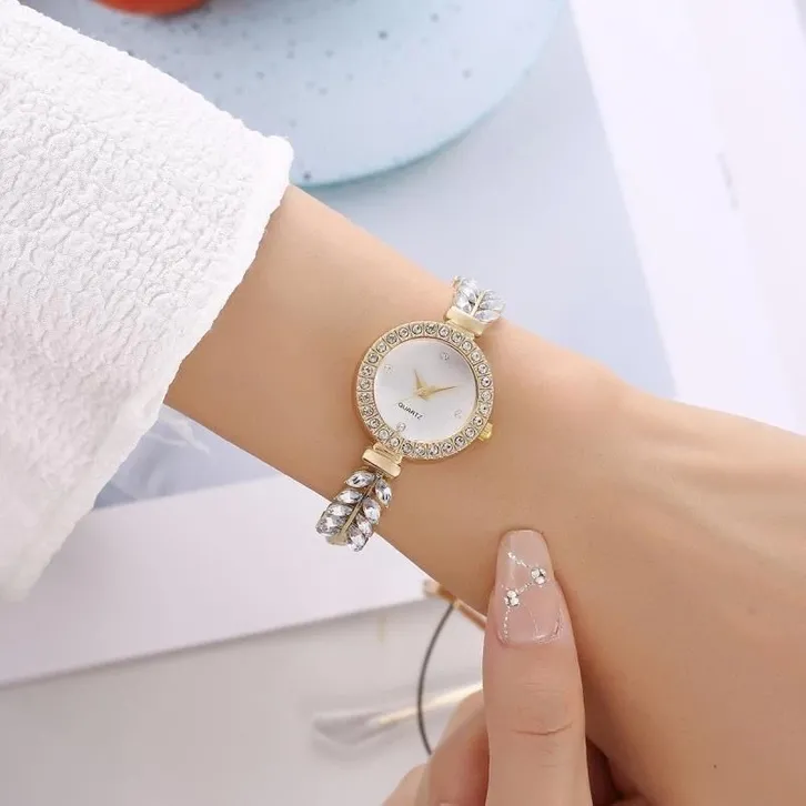 WBS Jam Tangan Serut Mewah Gelang Serut Wanita Analog Quartz Adjustable Anti Air Rantai Stainless Steel Fashion