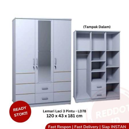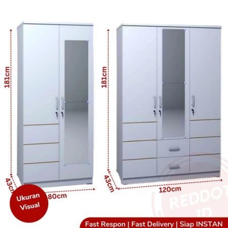 [Star] Lemari Pakaian Dewasa Red Modern Minimalis 2 Pintu Dan 3 Pintu Banyak Pilihan Motif