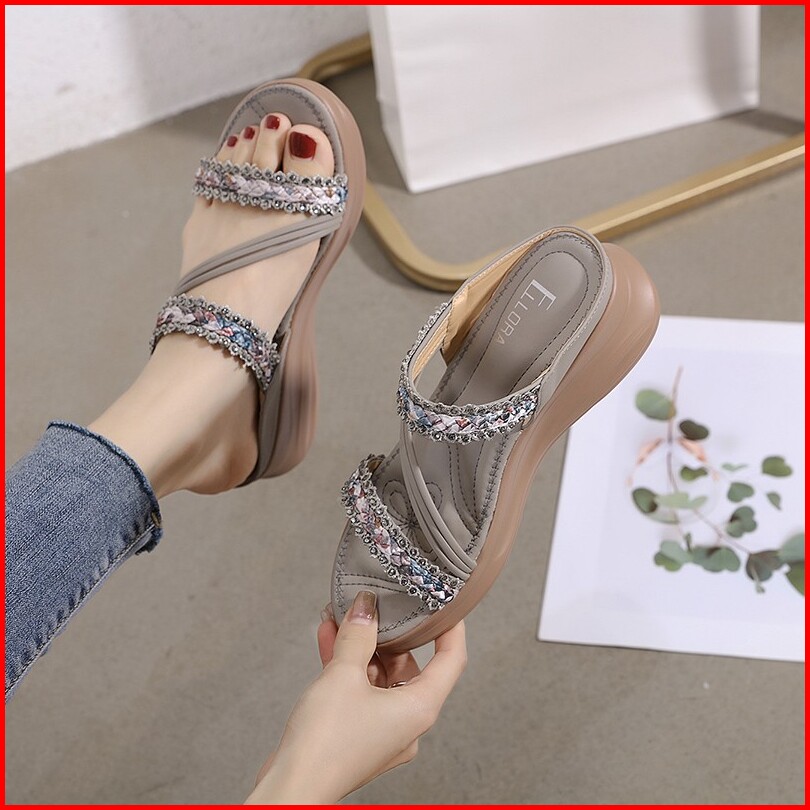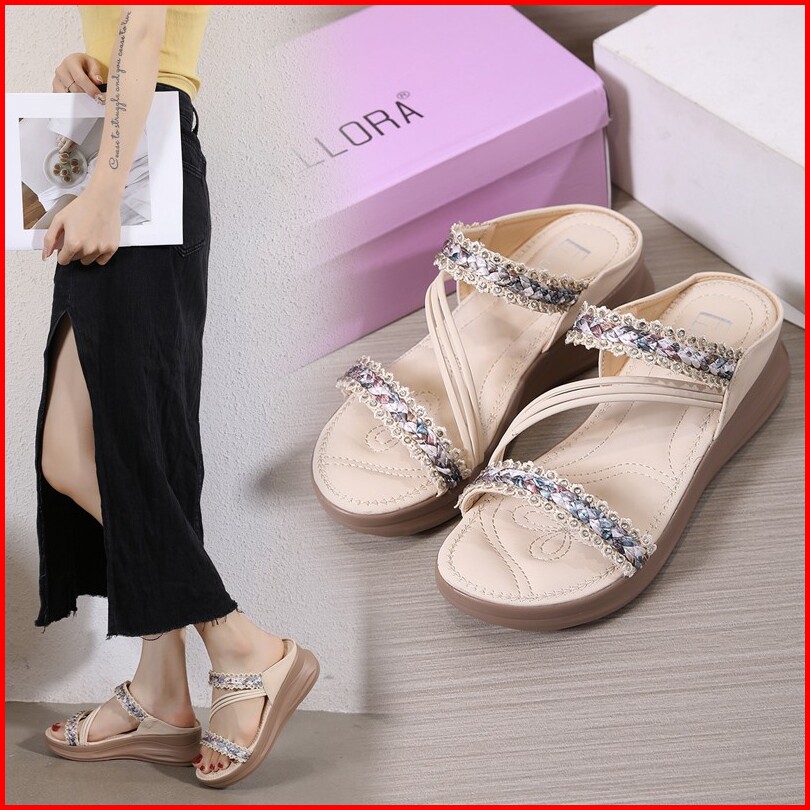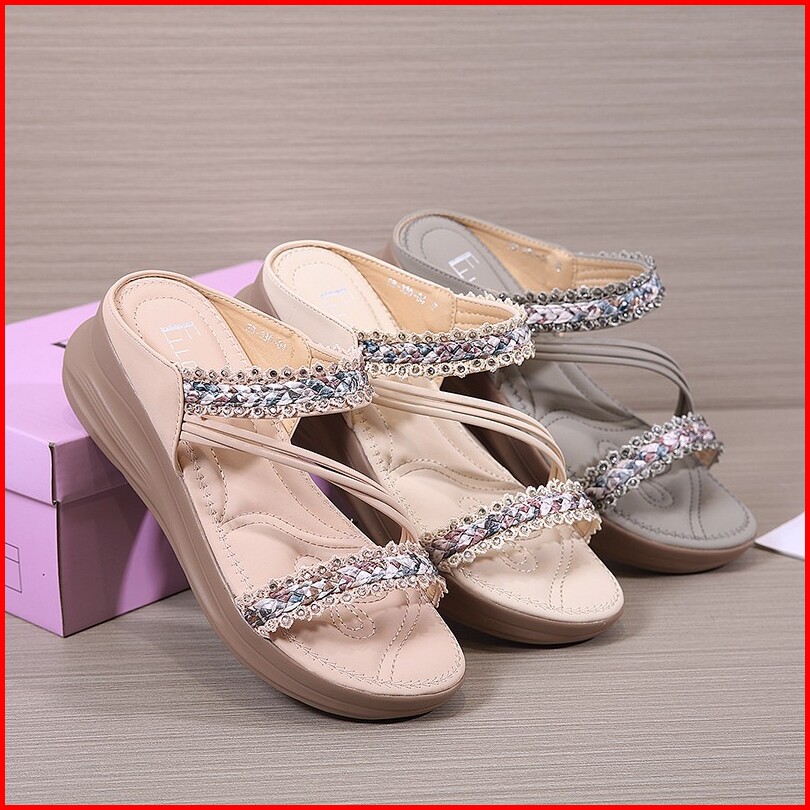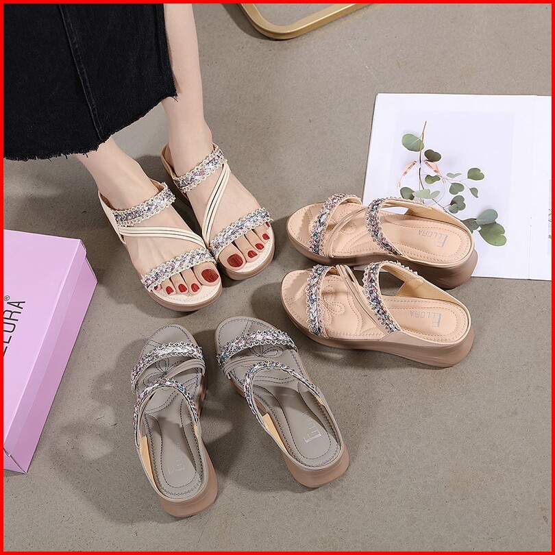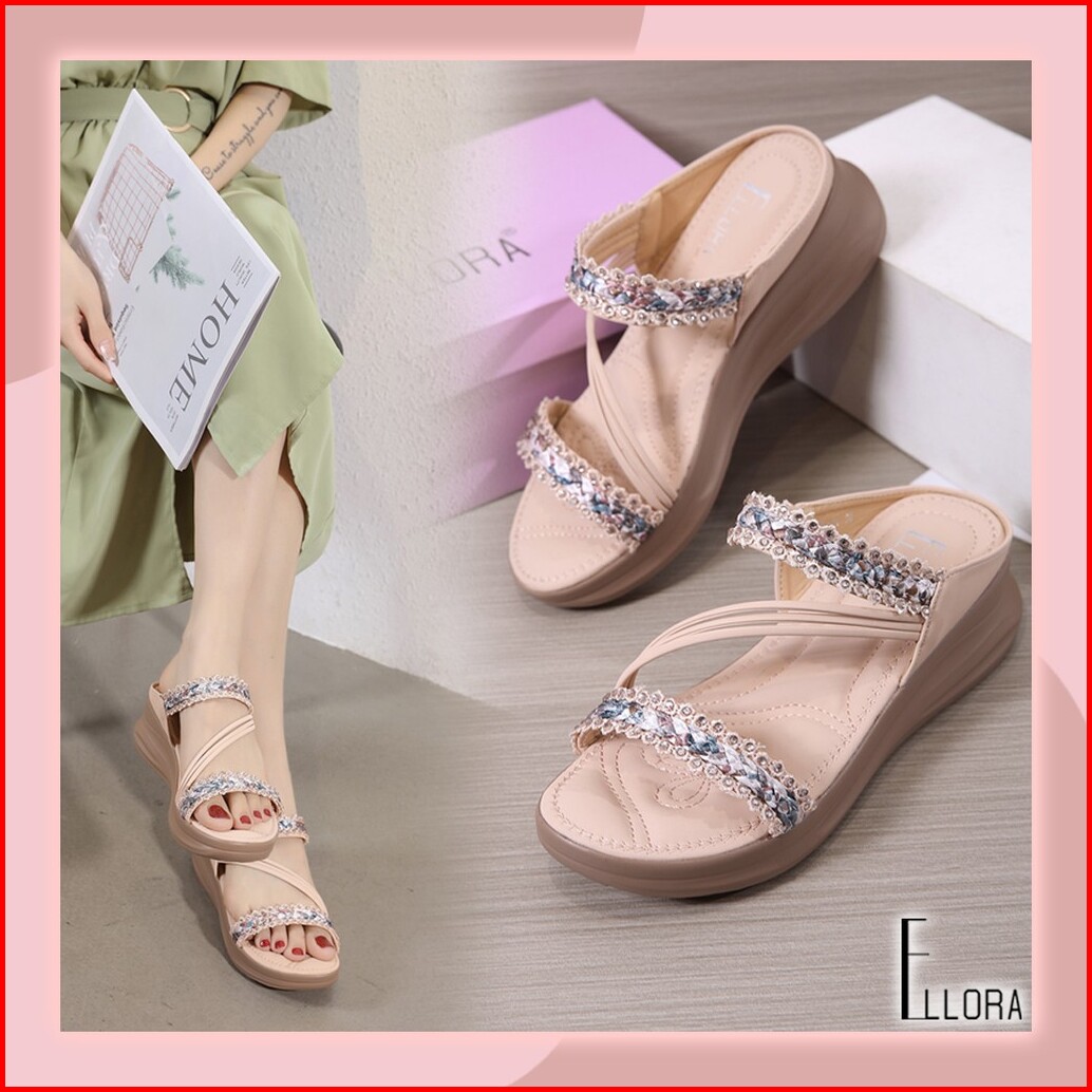 Ellora Eb330-04 Sandal Wedges Wanita Import Tanpa Tali 5cm