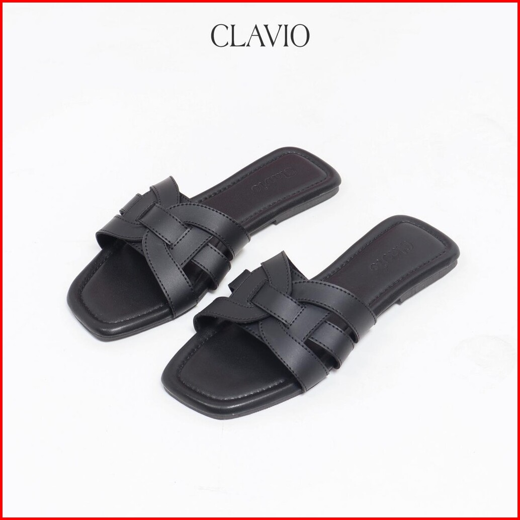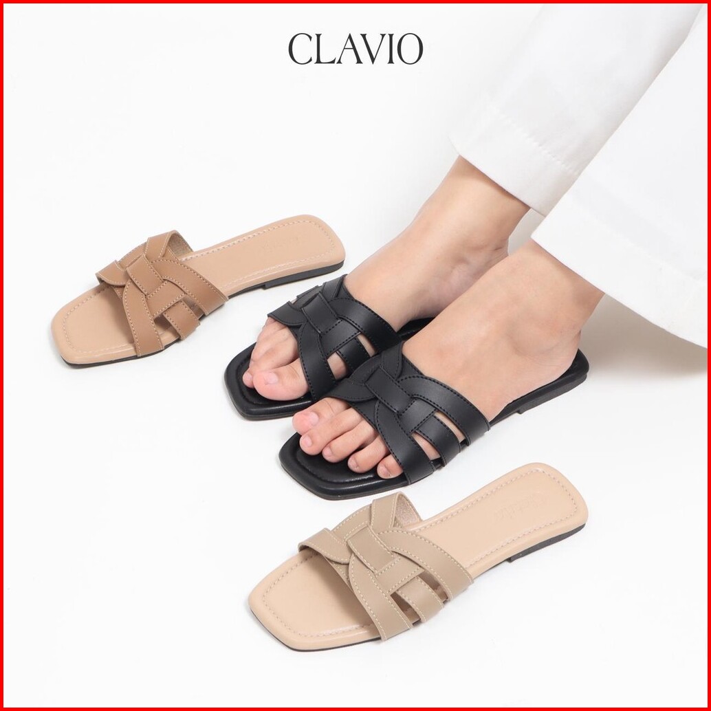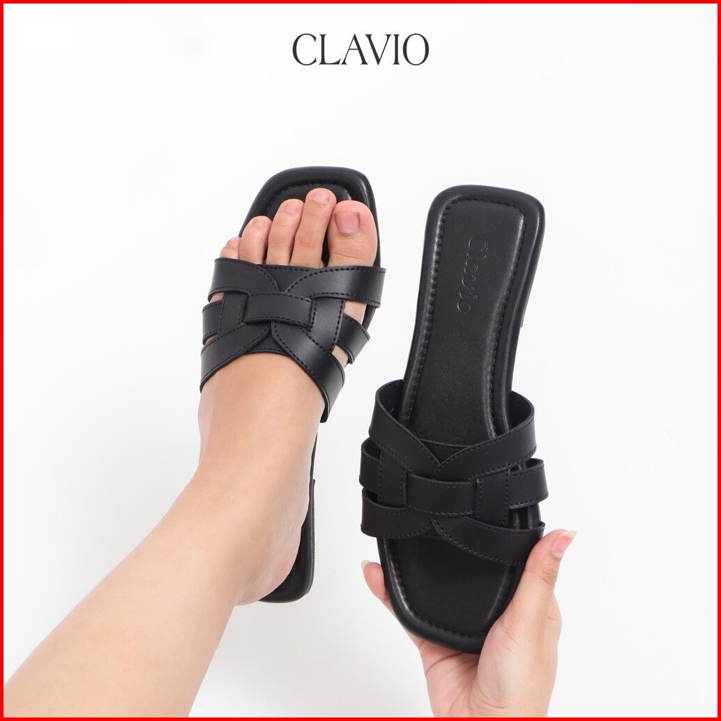 Clavio - Tami Sandal Wanita Teplek Korea Casual Size 36 - 41 Sendal Slop Empuk Flat Cewek Kasual Rumahan Warna Hitam Kre