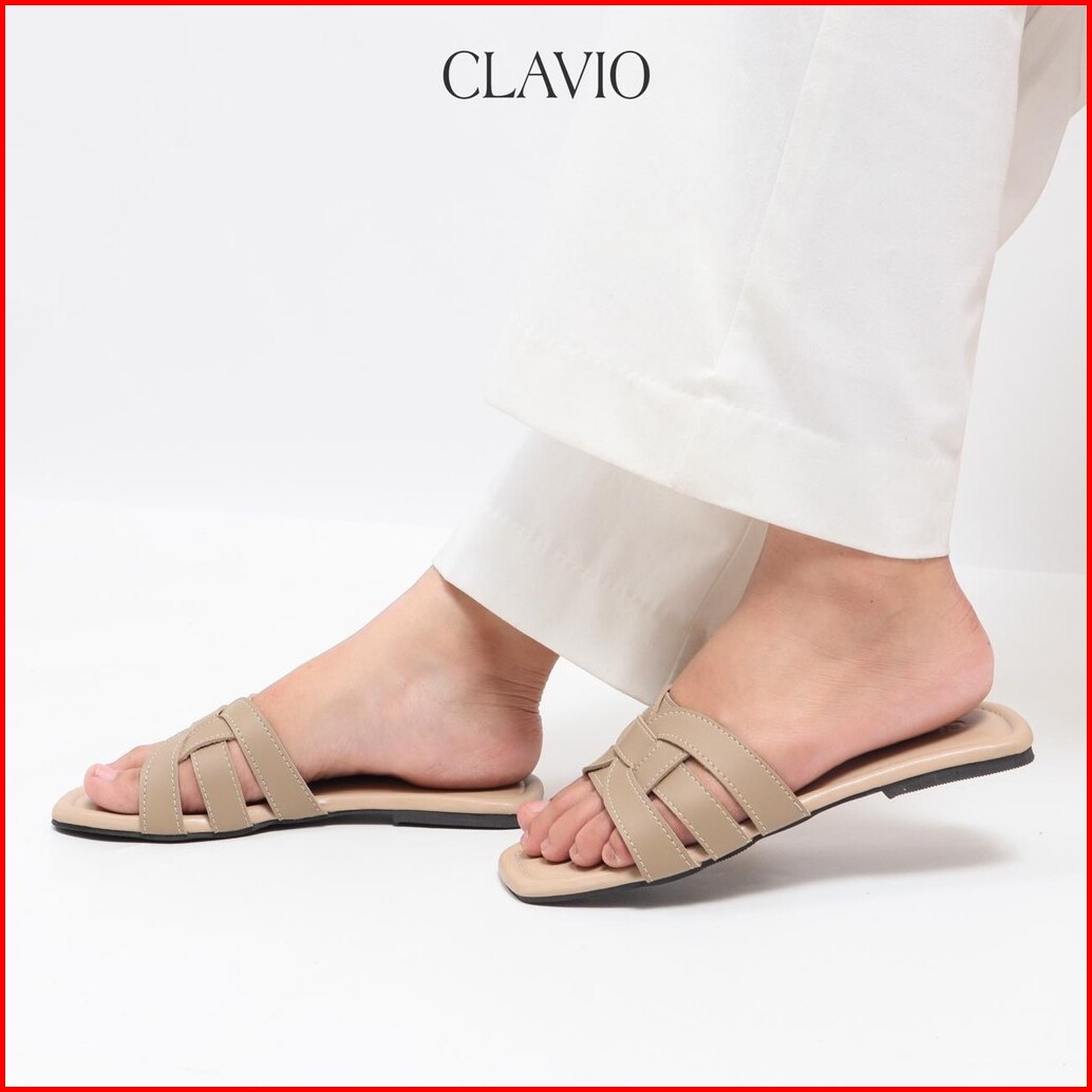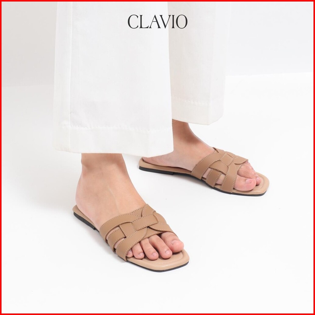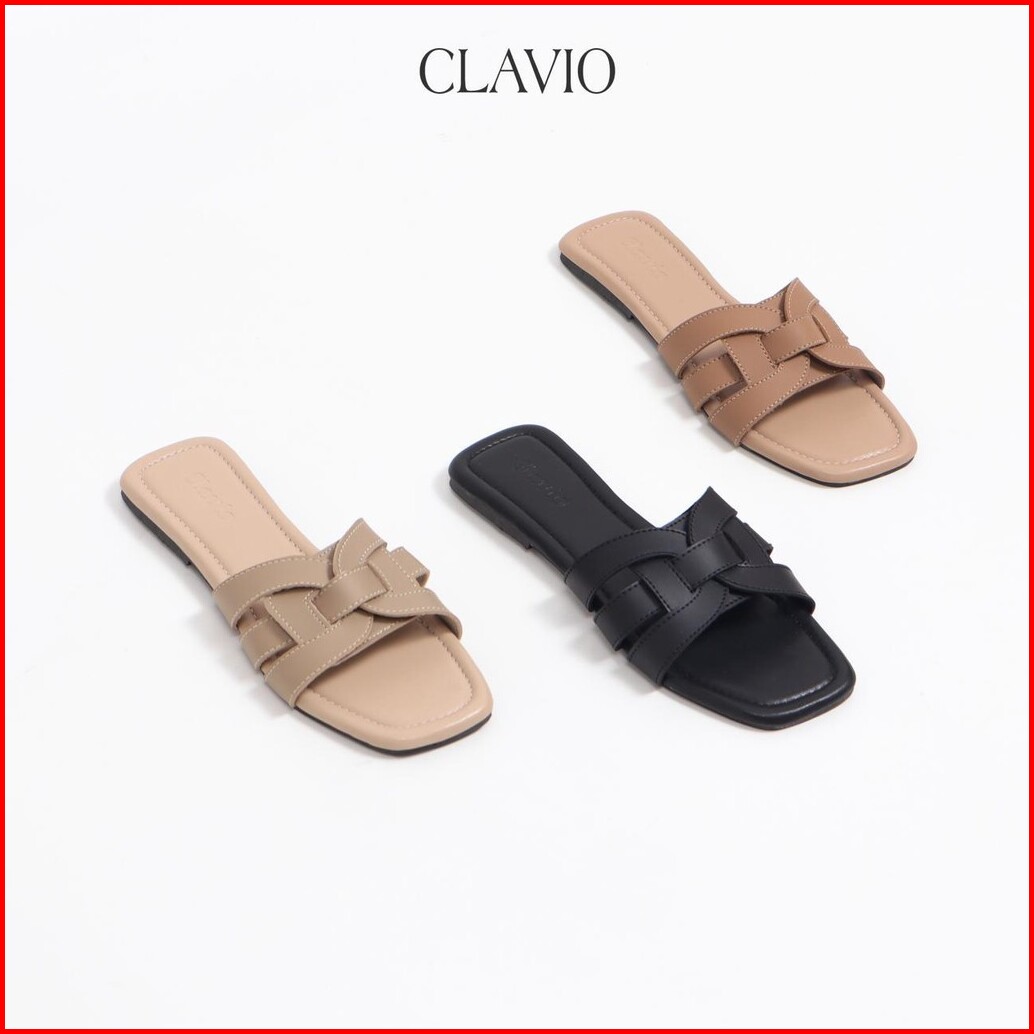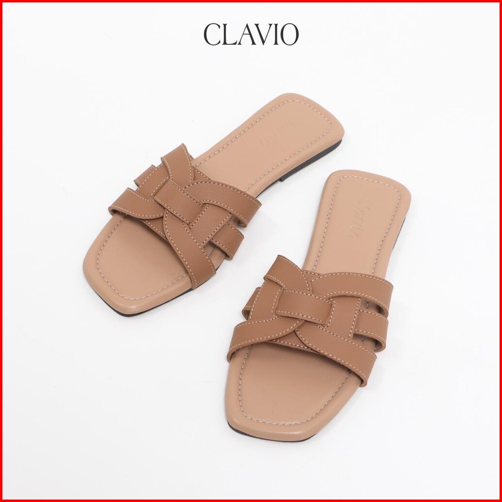 Clavio - Tami Sandal Wanita Teplek Korea Casual Size 36 - 41 Sendal Slop Empuk Flat Cewek Kasual Rumahan Warna Hitam Kre