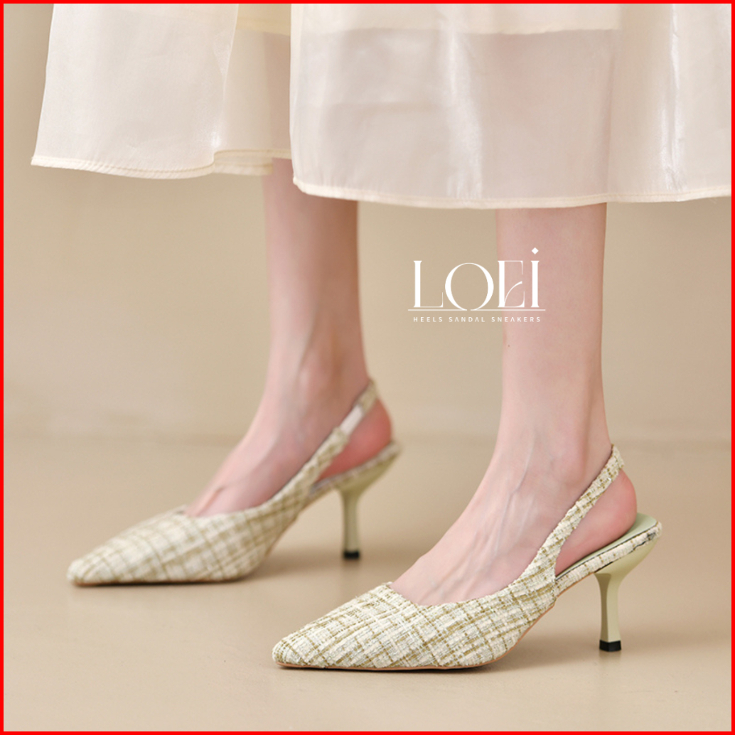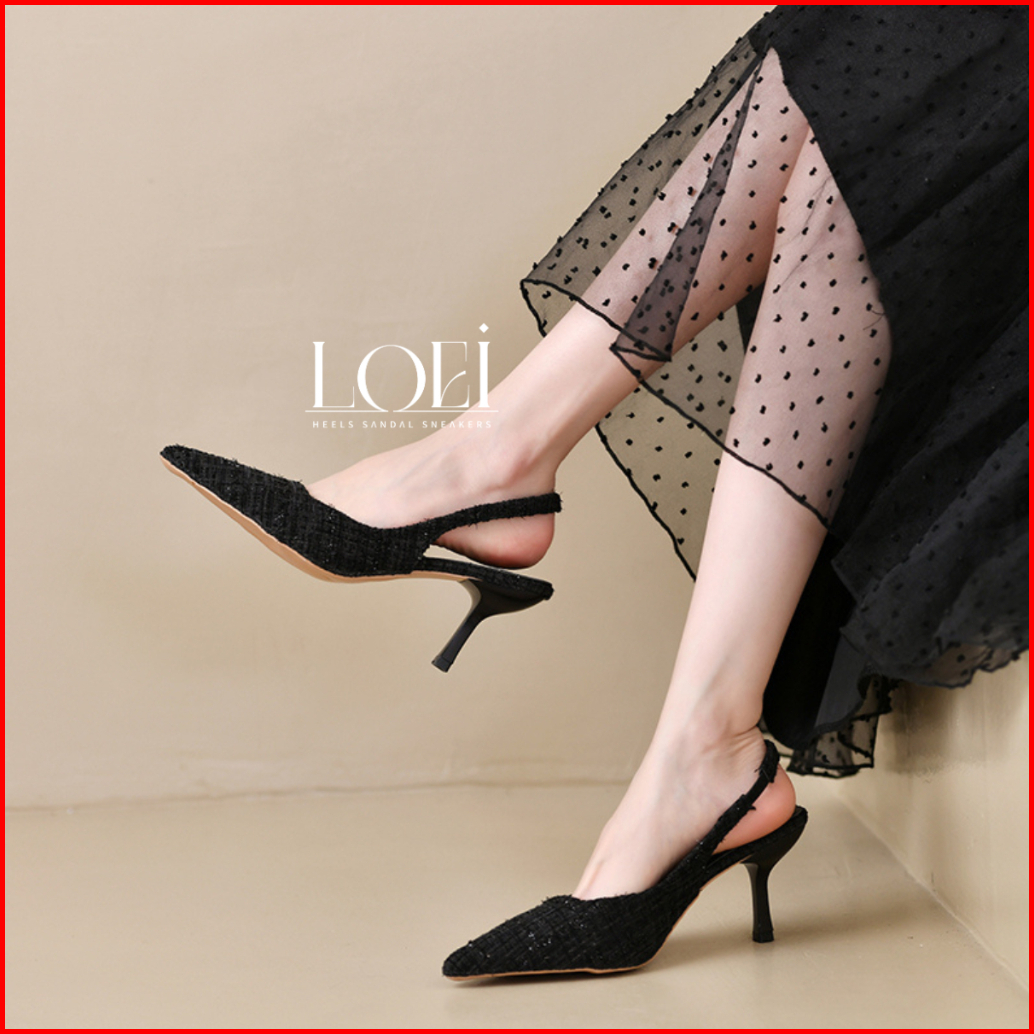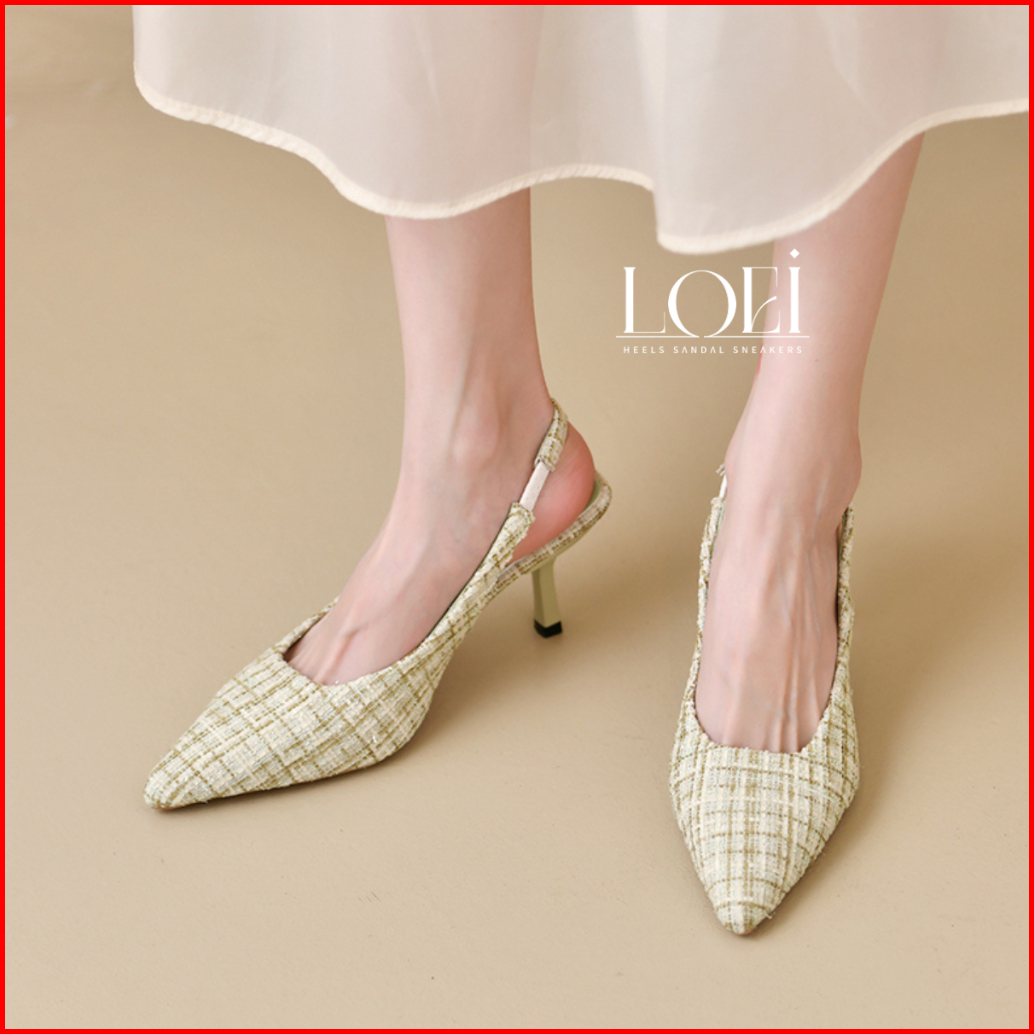 Loei Kezia Tweed High Heels Wanita Sepatu Hak Tinggi Pesta 8283