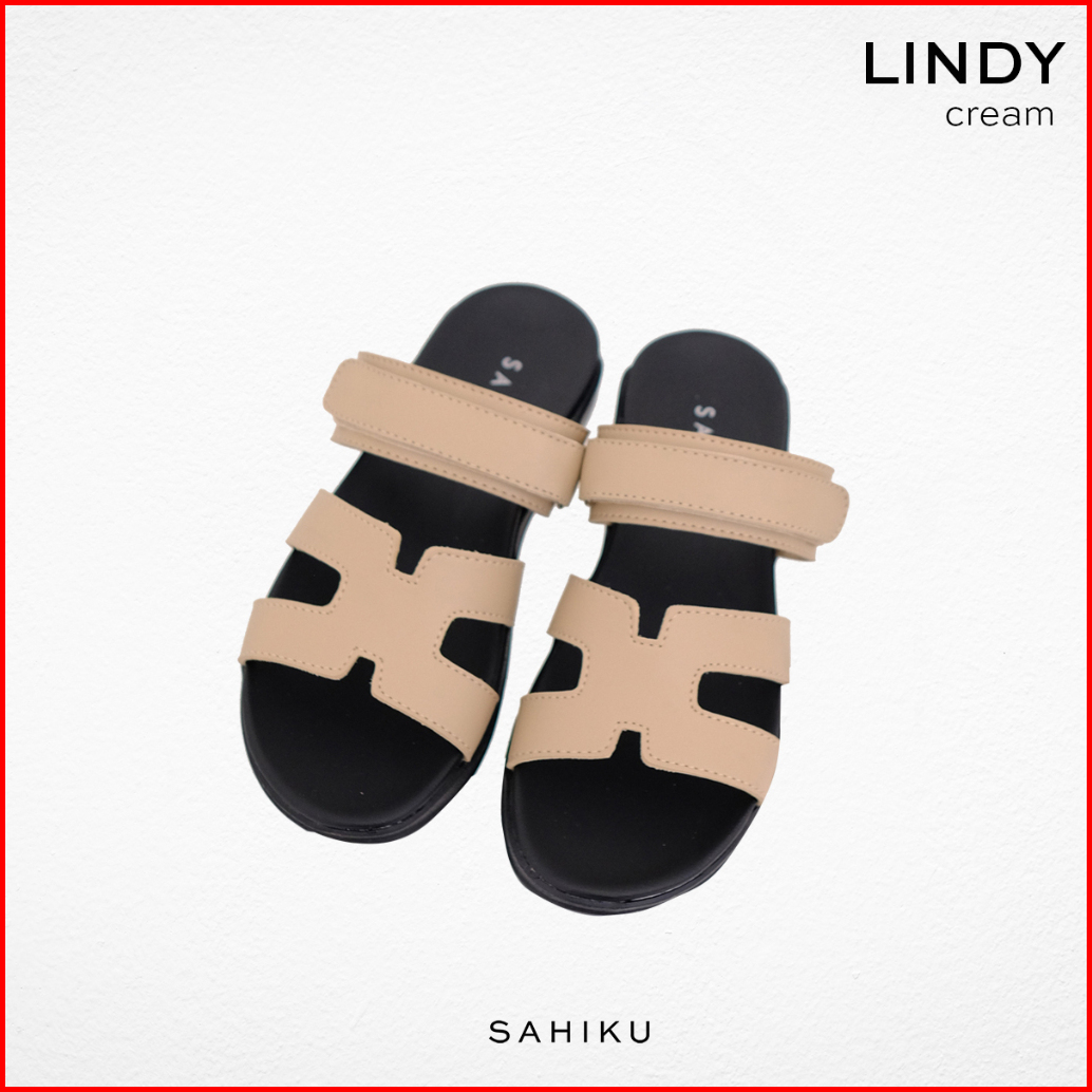Sahiku - Lindy Sandal Flat Casual Santai Wanita Premium Teplek Slop Slip On Ringan Empuk Anti Slip