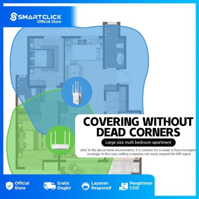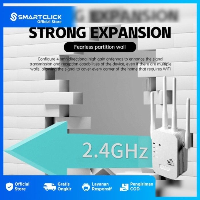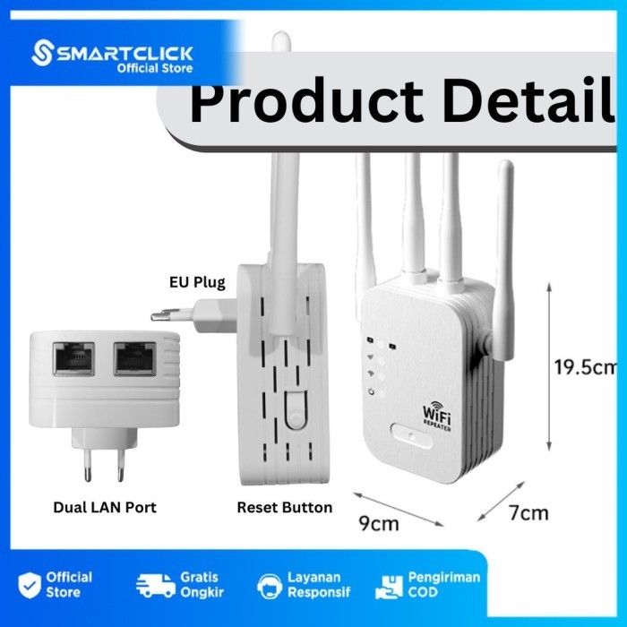 Wi Fi Extender Wireless Jarak Jauh 4 Antena 300 Mbps 2 LAN Port Penguat Signal Repeater