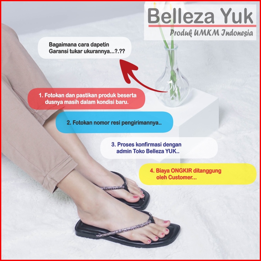 Belleza Yuk - Safi Sandal Wanita Jepit Blink Kristal Size 36 - 40 Beleza Sendal Teplek Flat Cewek Pergi Santai Rumahan B