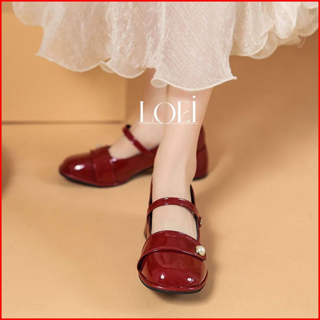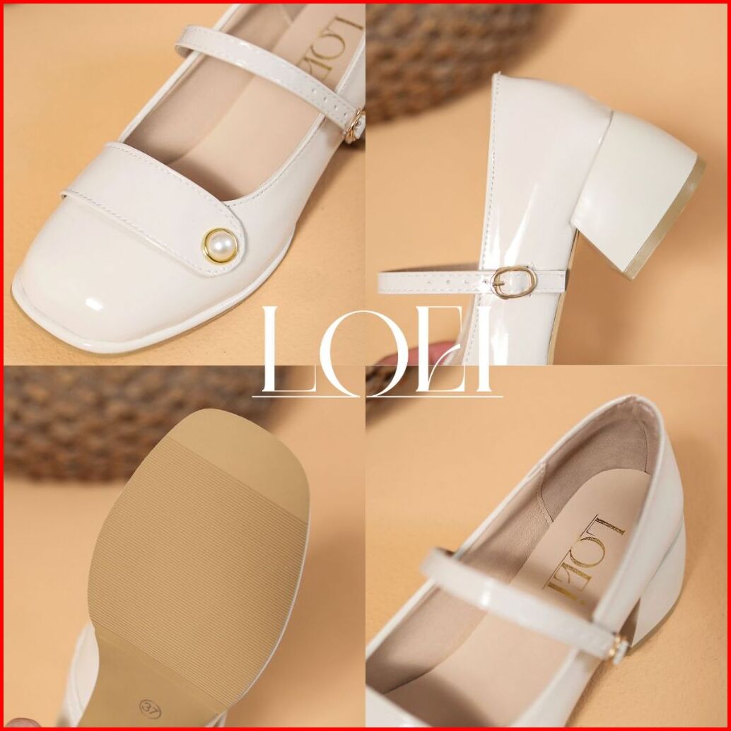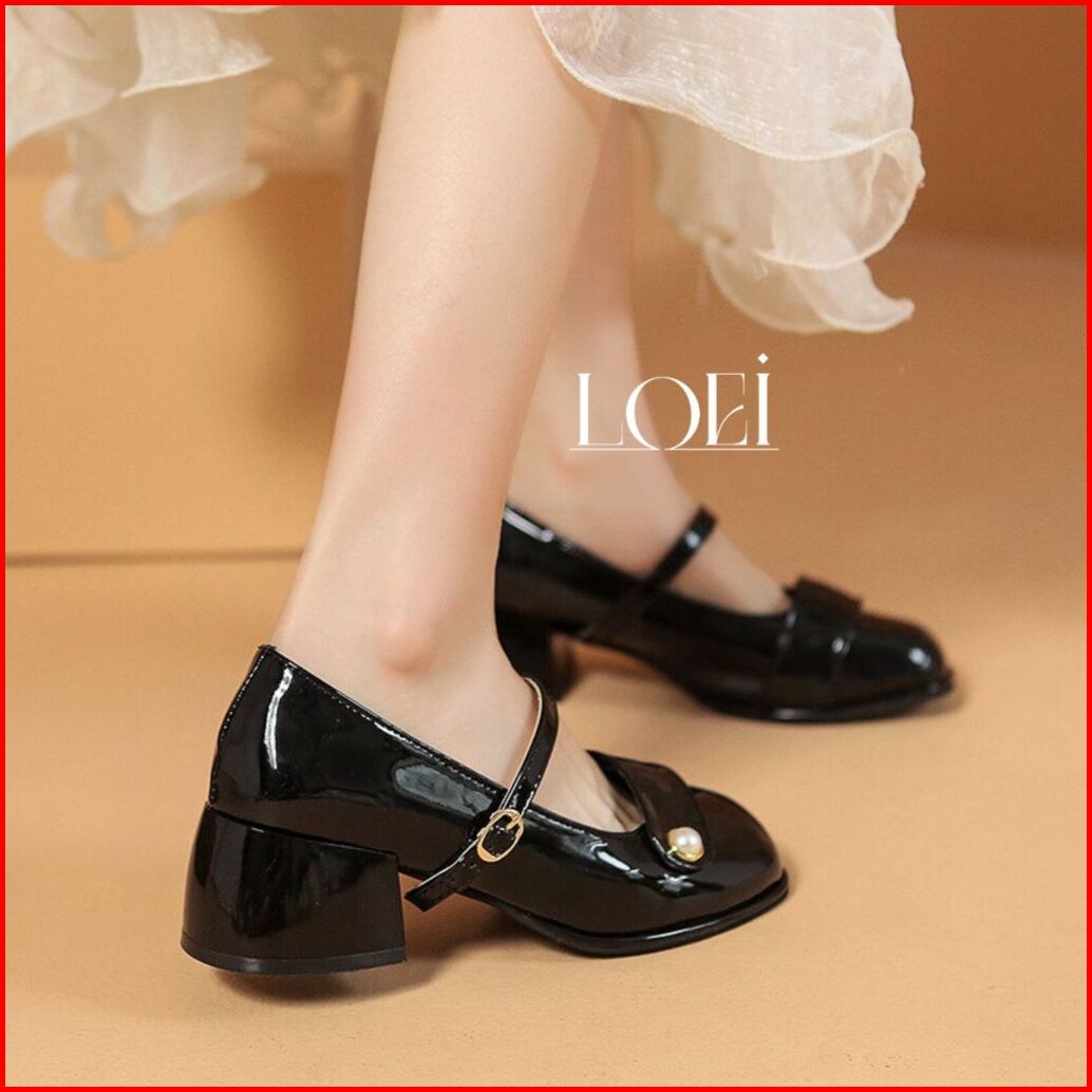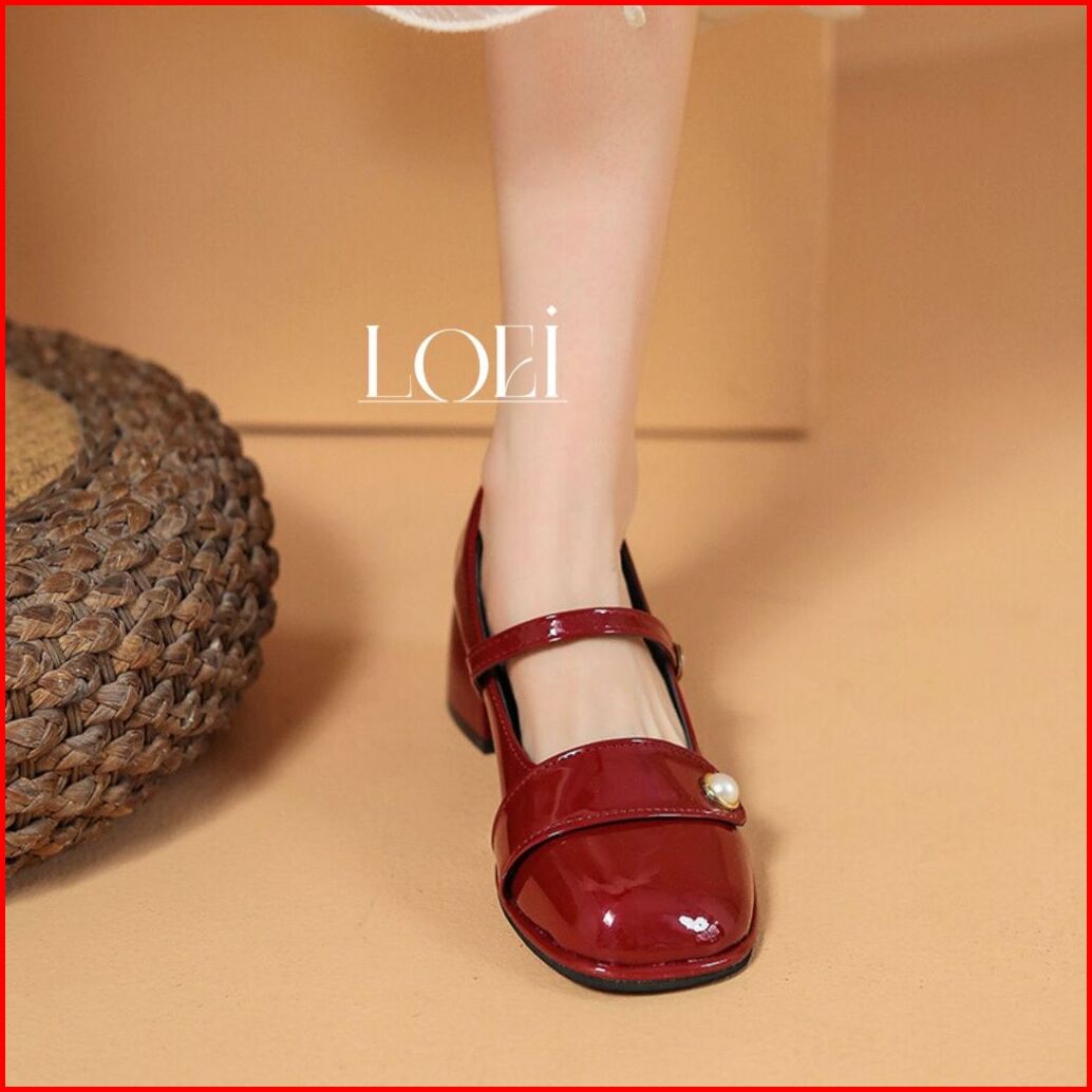 Loei Quinn Sepatu Hak Tahu Wanita Elegant Heels Fashion Mary Jane Sepatu Tali Glossy 0023