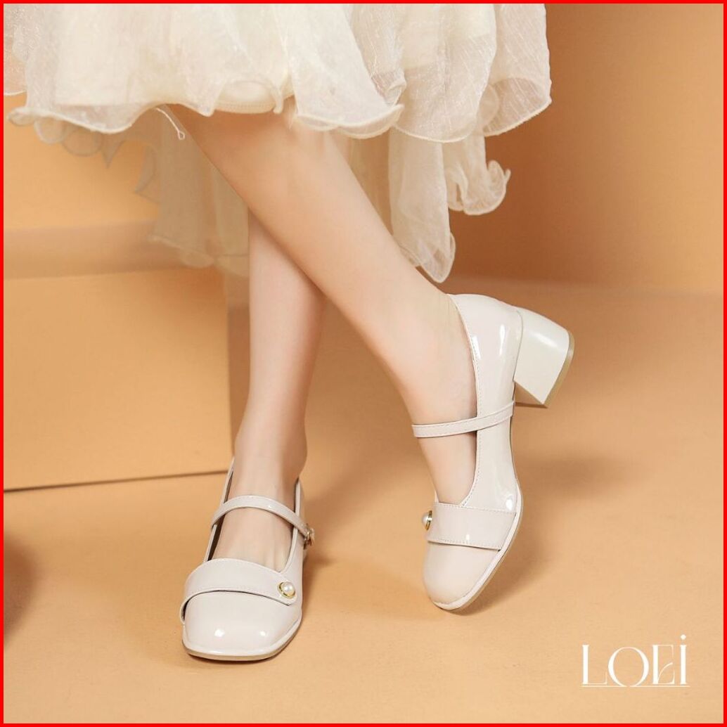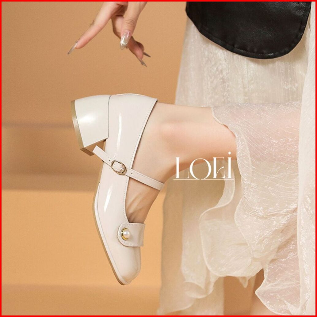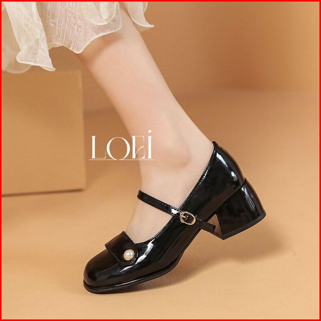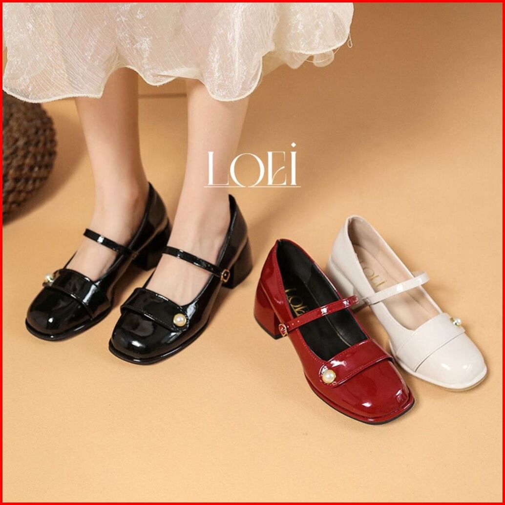 Loei Quinn Sepatu Hak Tahu Wanita Elegant Heels Fashion Mary Jane Sepatu Tali Glossy 0023