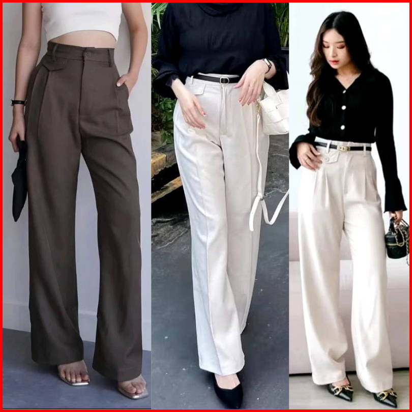 Celana Kulot Wanita Highwaist Pants Celana Cullote Panjang Long High Waist