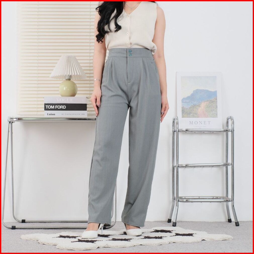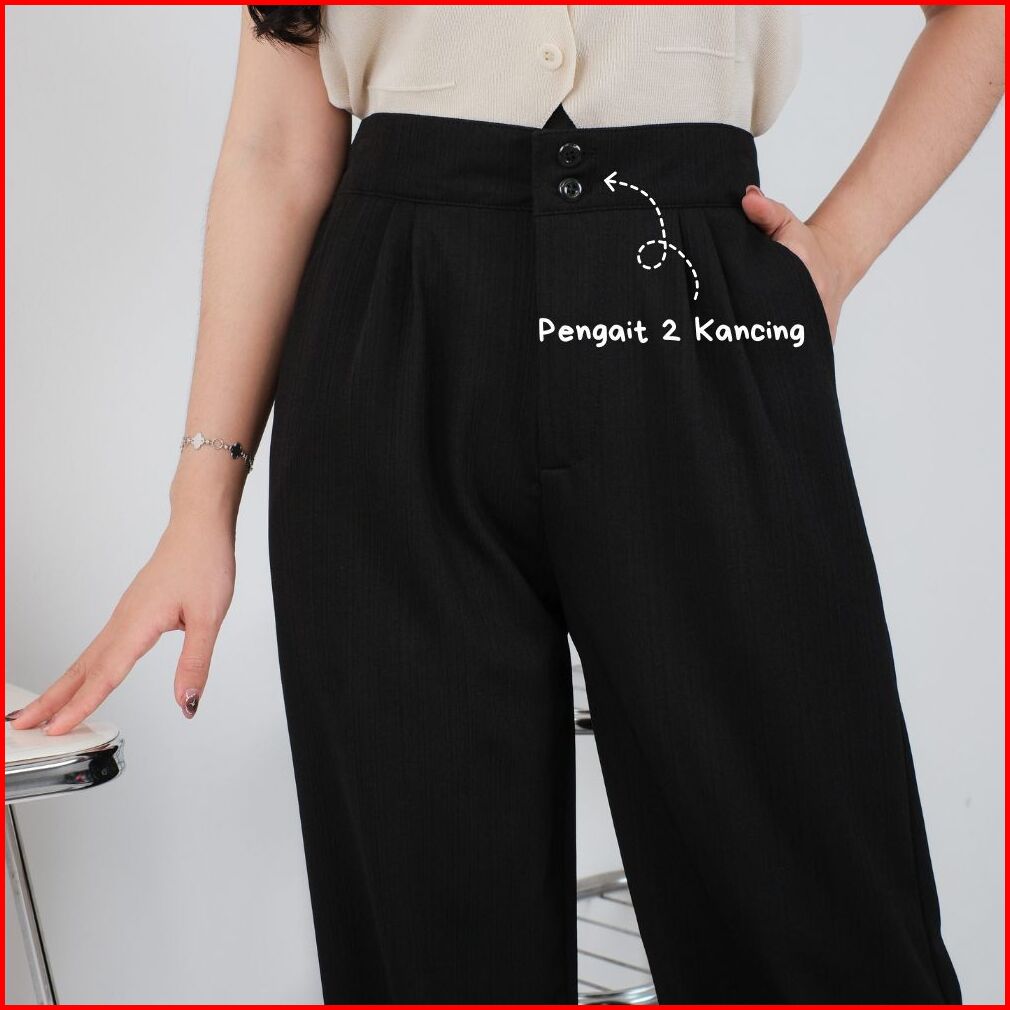 Celana Kulot Highwaist Daily Wanita Jennie Pants Knit Premium Loose Cullote Pants Wanita Kekinian