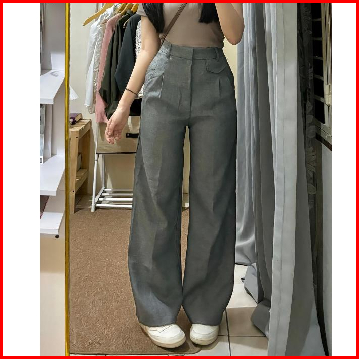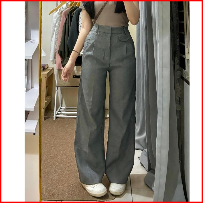Elmaraz - Celana Panjang Wanita Kerja Kantor Loose Pants Wanita Kekinian Terbaru