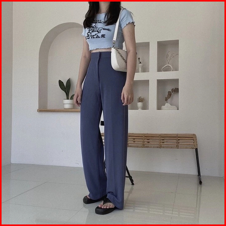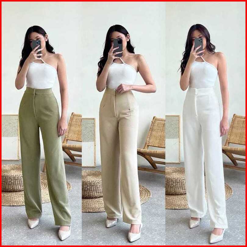 Cozie Knit Pants Highwaist Kulot Loose Bahan Knit Korean Style