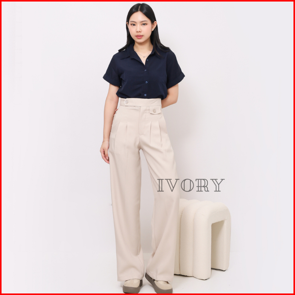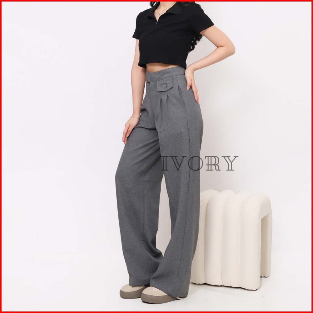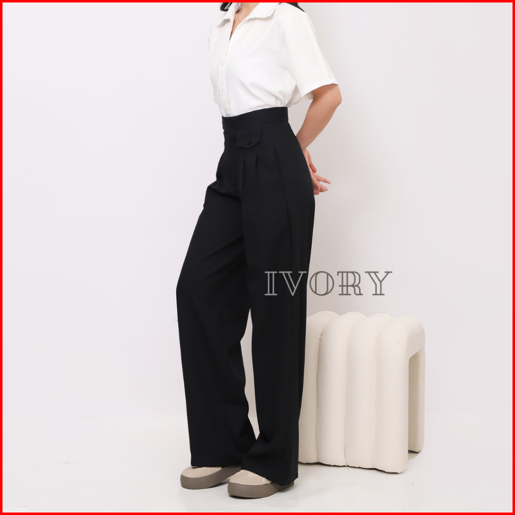 Ivory - Celana Kulot Wanita Panjang Loose Pants Highwaist Celana Wanita Kerja Kantor Formal Kekinian Korean Style