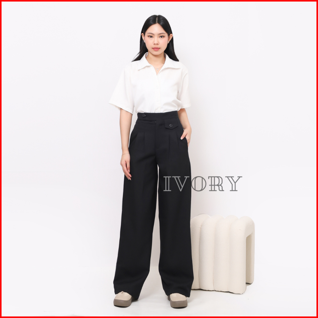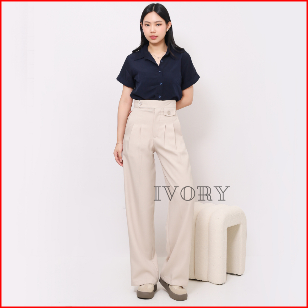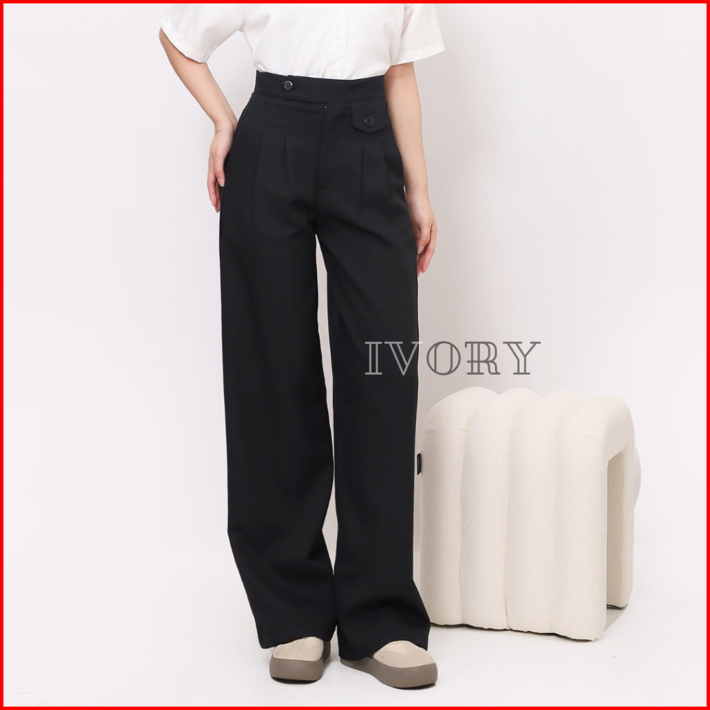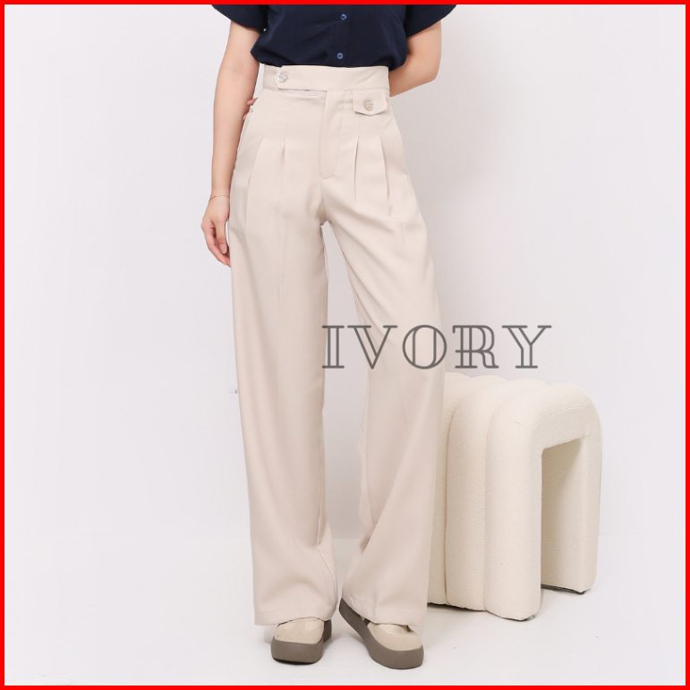 Ivory - Celana Kulot Wanita Kerja Formal Kantor Bahan Celana Wanita Panjang Highwaist Loose Pants Kekinian