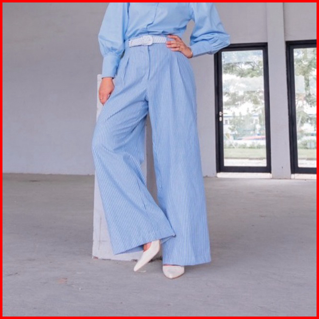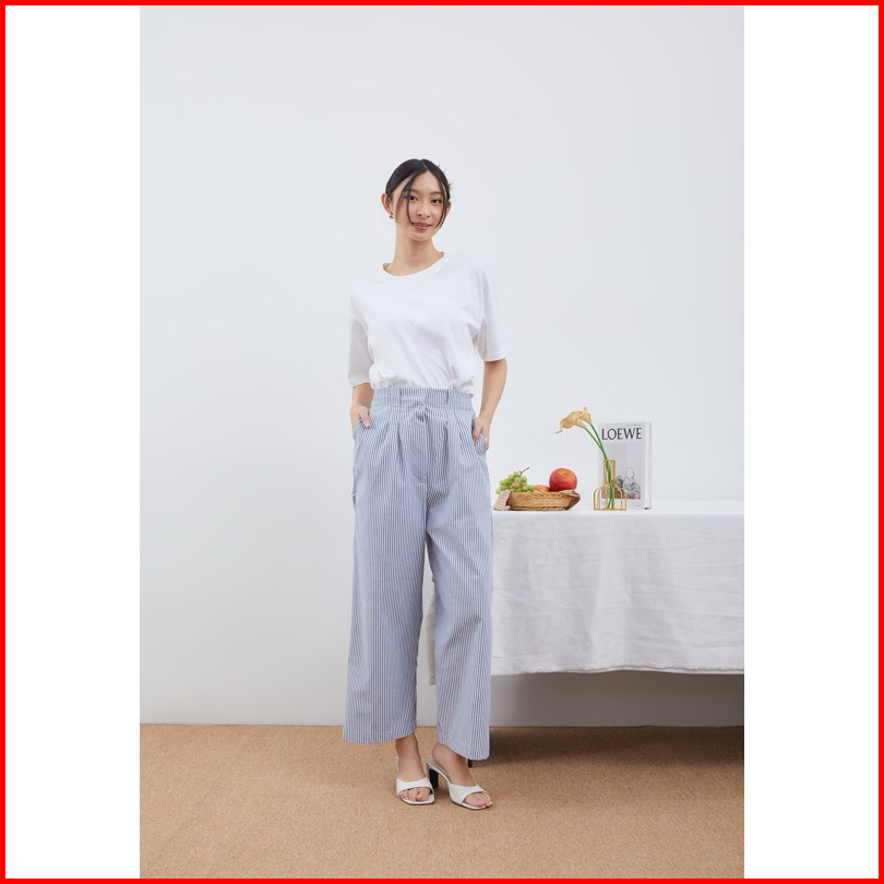 Marienfrisco - Julliana Celana Highwaist Wanita Stripes Pants Fit To Bb 85 Kg