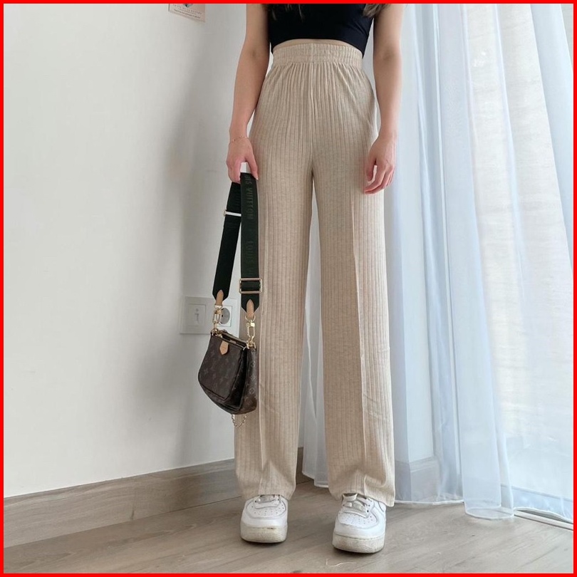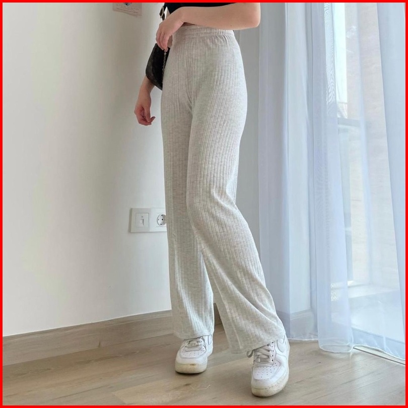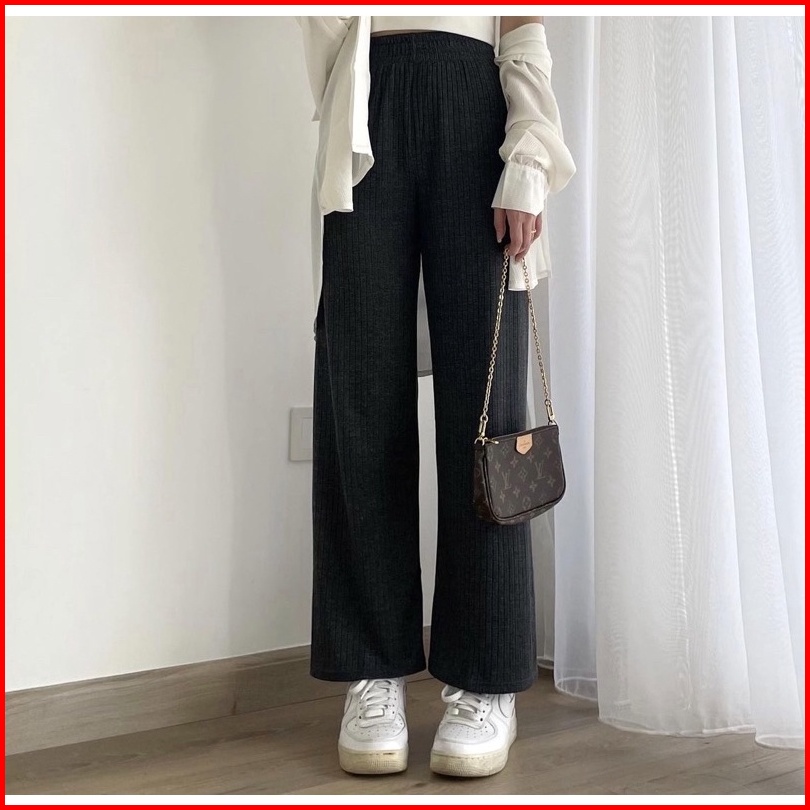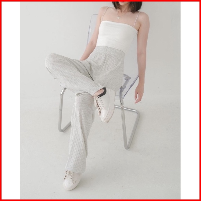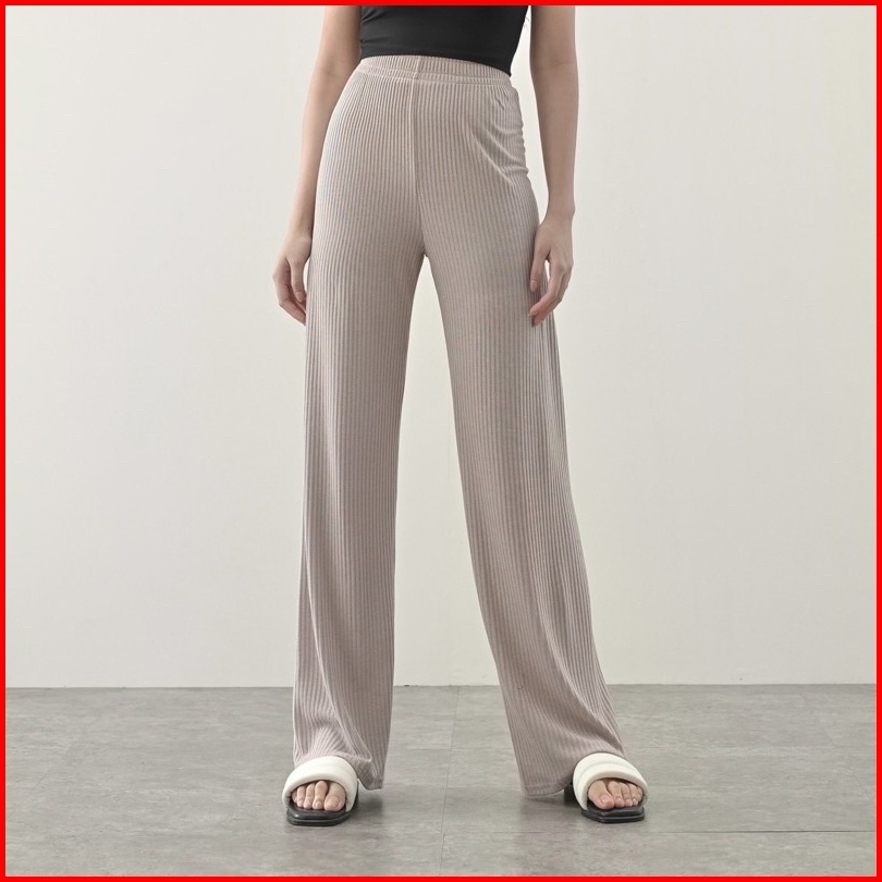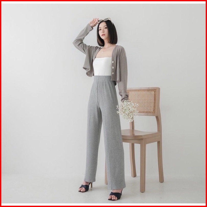 Kylie Knit Pants Celana Kulot Wanita Highwaist Wide Leg Pants Long Knit Pants