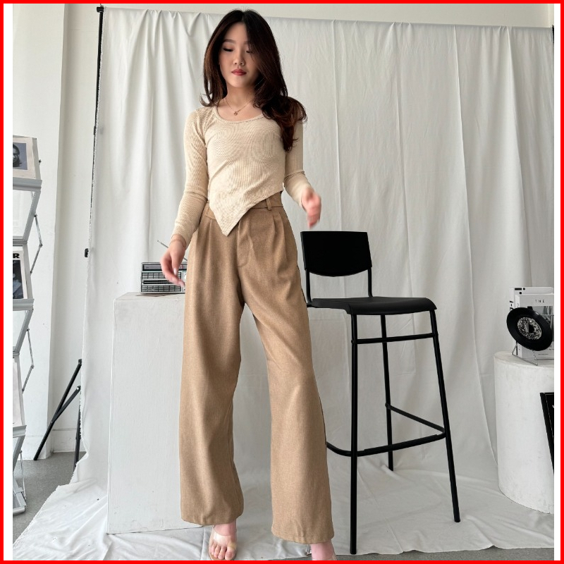 Mouiselle Irish Pants Woman Highwaisted Cullote Pants - Korean Style Long Cullote Semiwool
