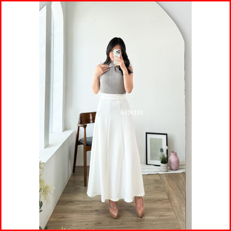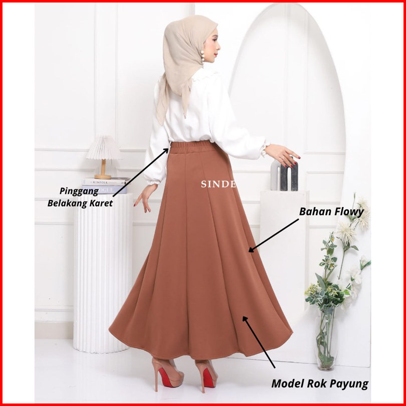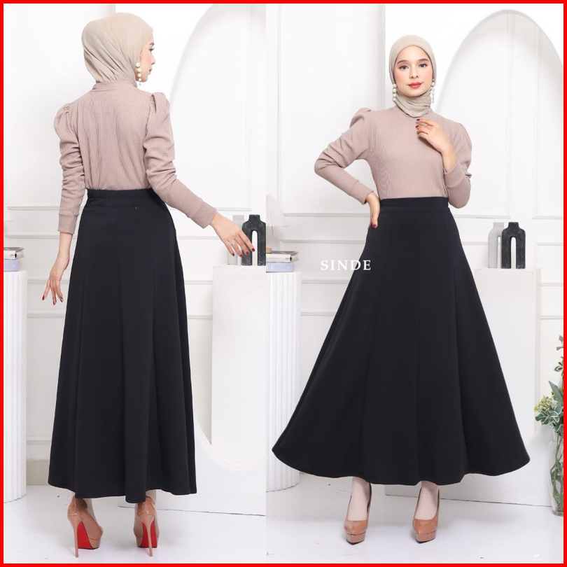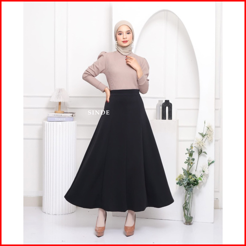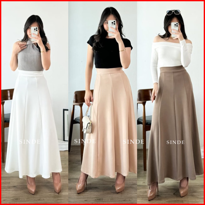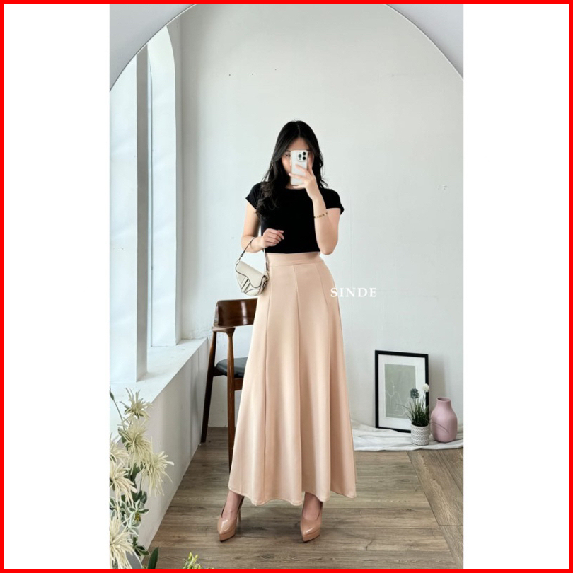 Sinde - Rok Audy Skirt Korean Loose Maxi Skirt Rok Wanita Anti Kusut Polyester Rok Flare Wanita Basic Polos Maxi Skirt R