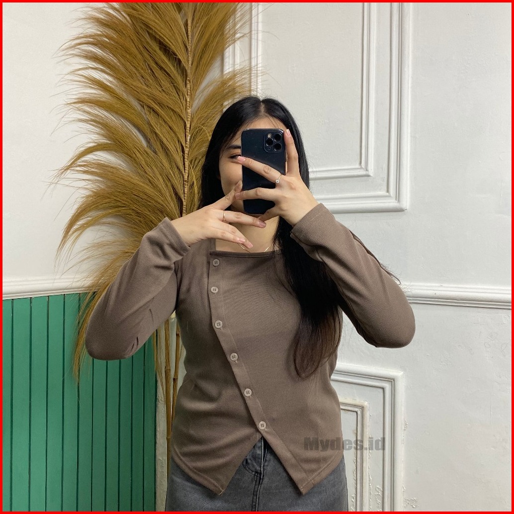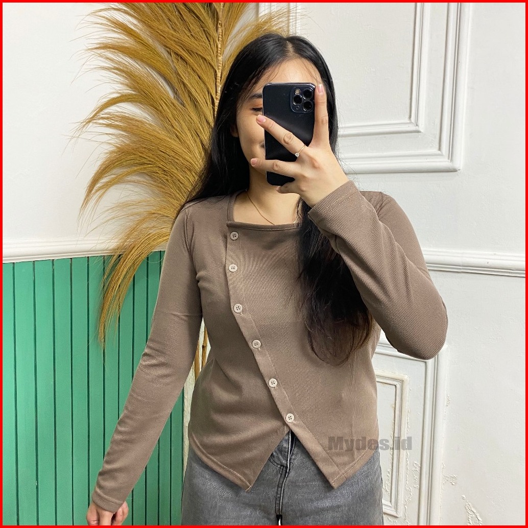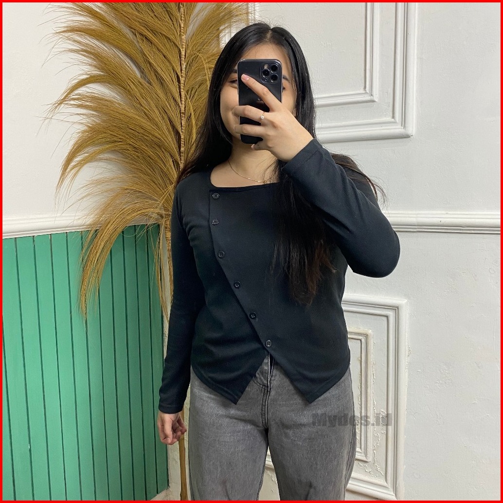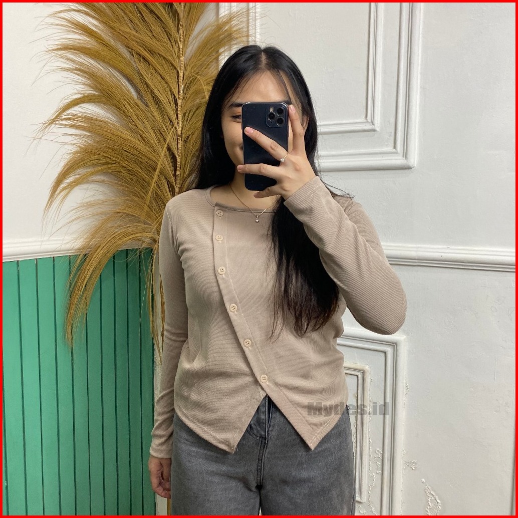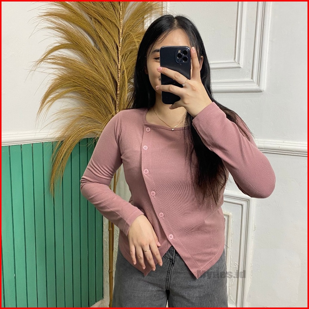 Kanaya Blouse Korea Rib Knit Style Kancing Atasan Wanita Rib Knit