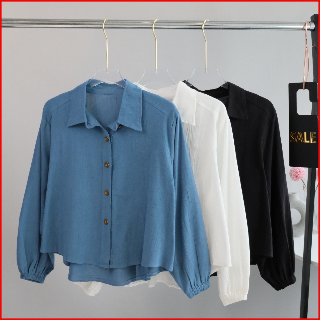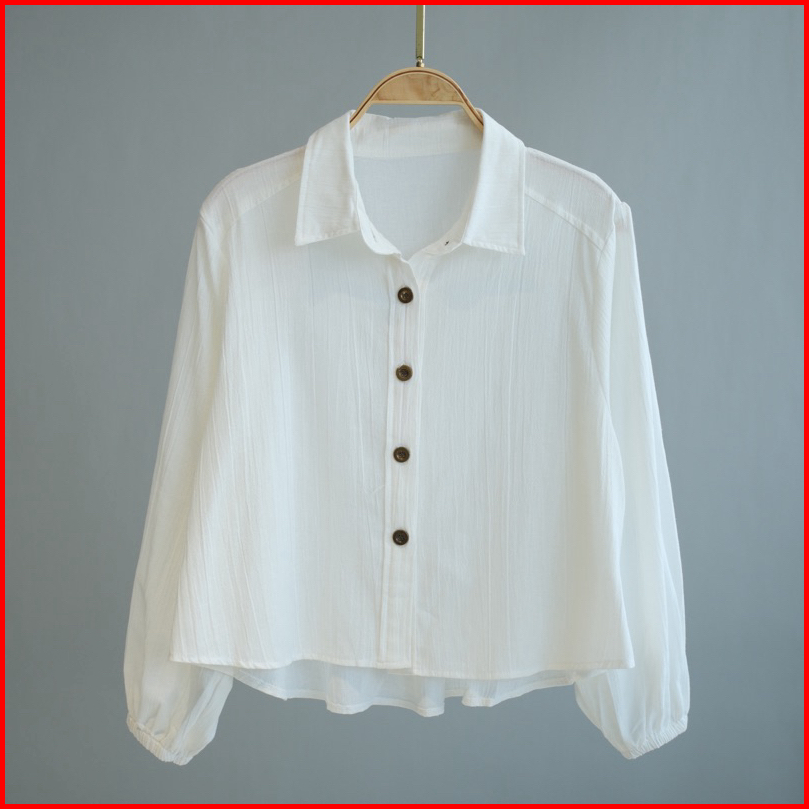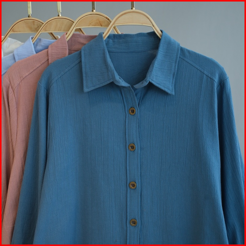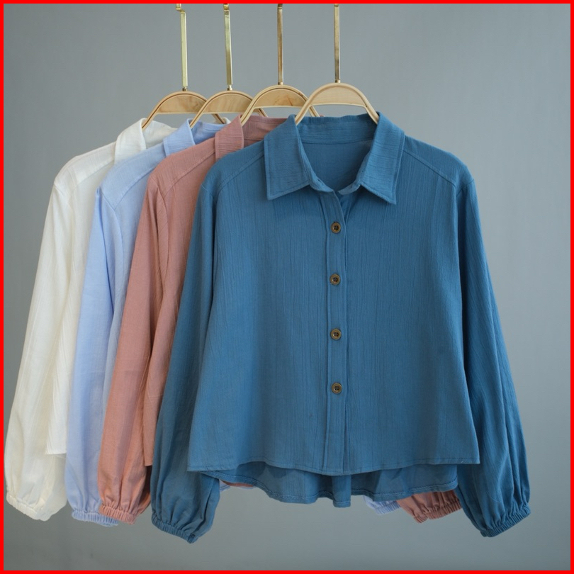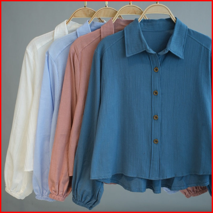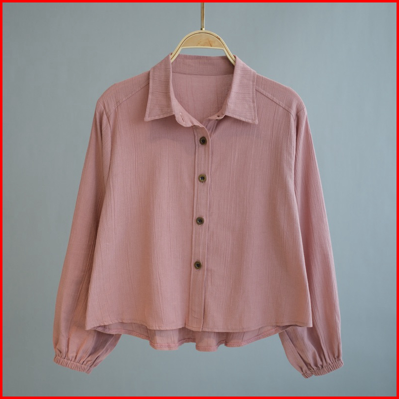 Pakaian Crop Wanita Pakaian Wanita Korean Style Kemeja Wanita Lengan Panjang Bahan Linen