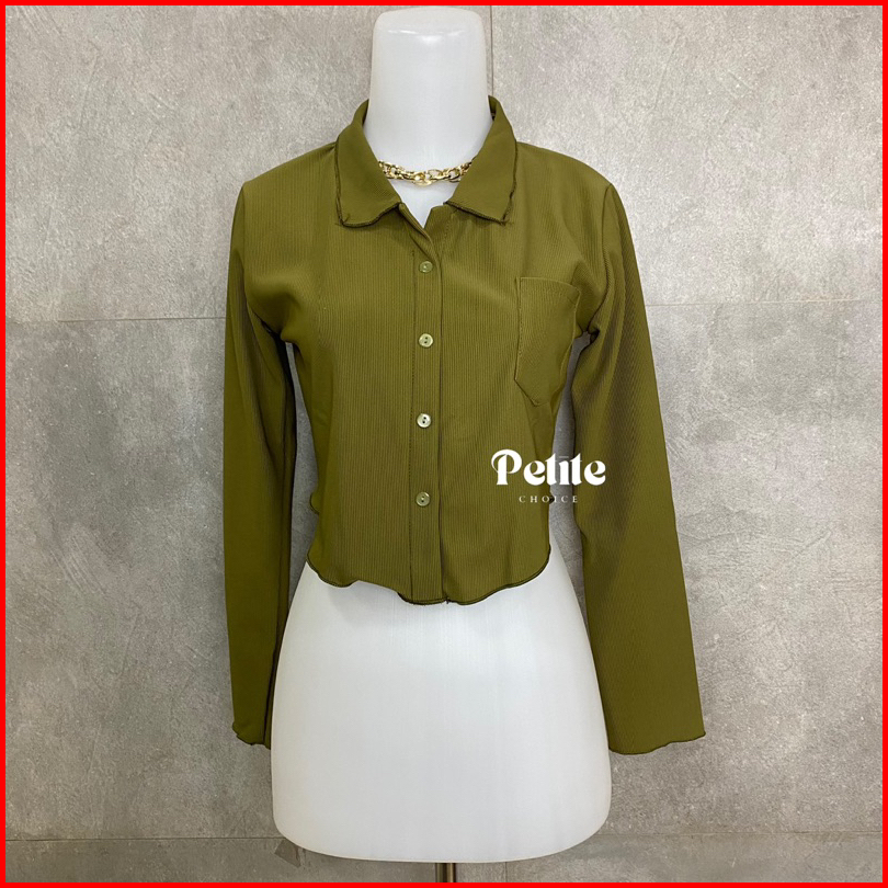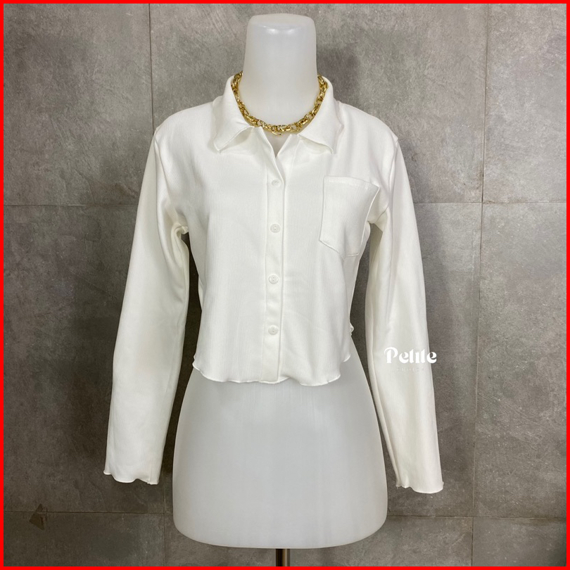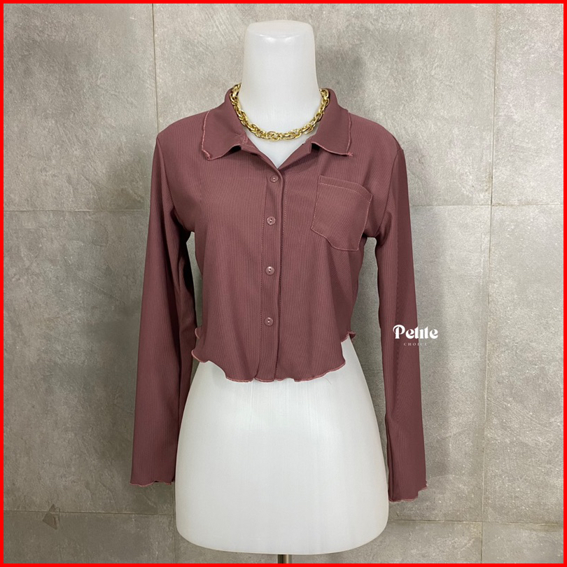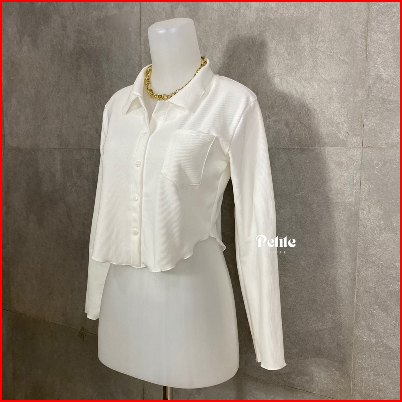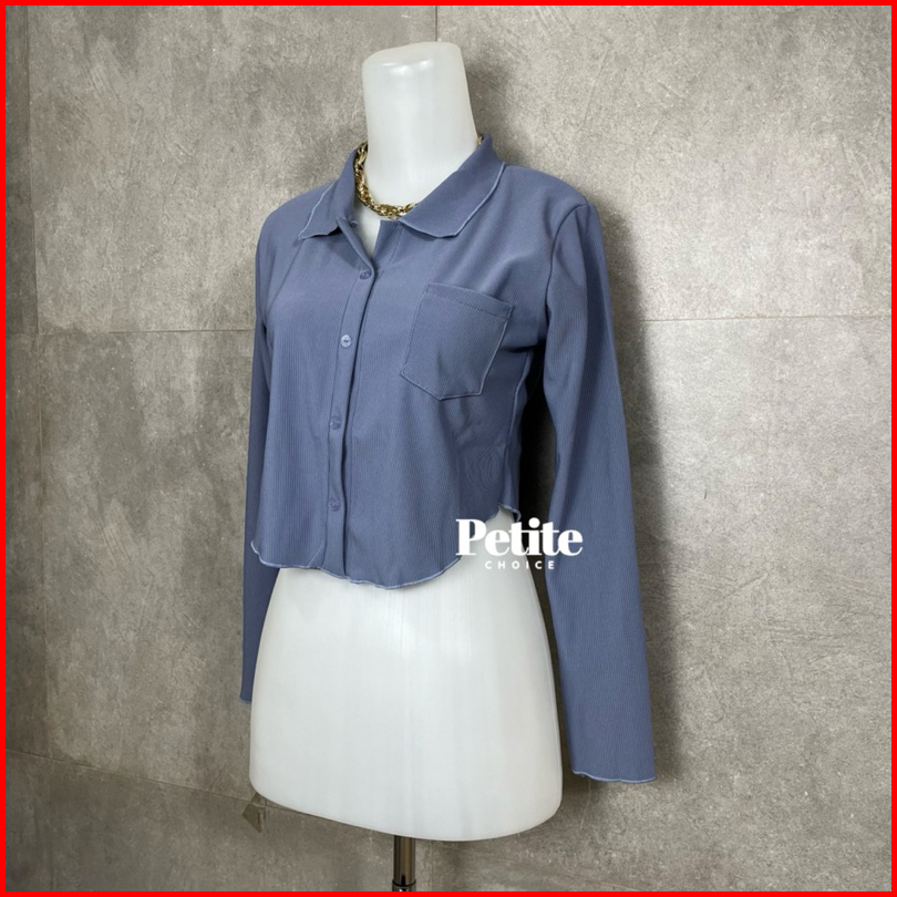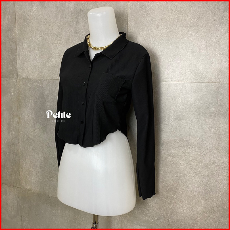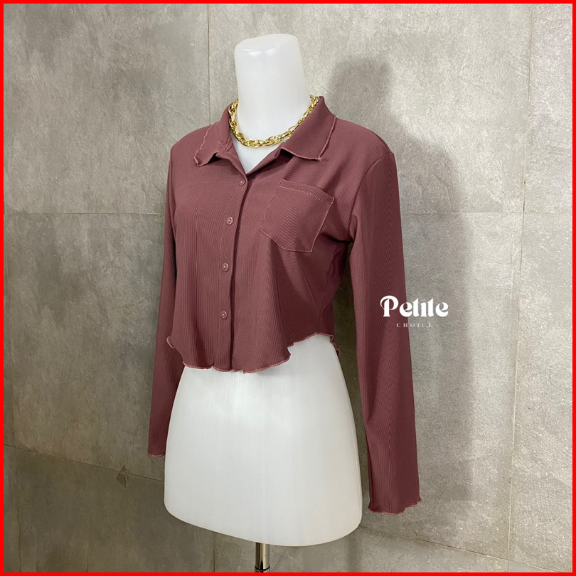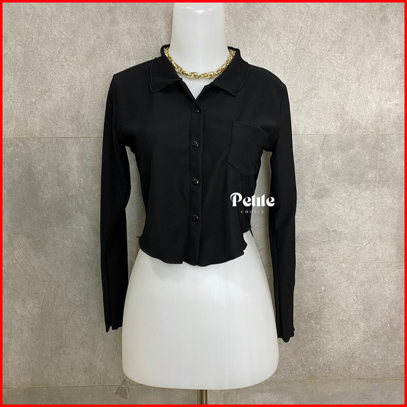 Petitechoice Chelsea Top - Crop Top Long Sleeve Knit Stretch Korean Style Pocket Kantong Wanita Knitwear Panjang