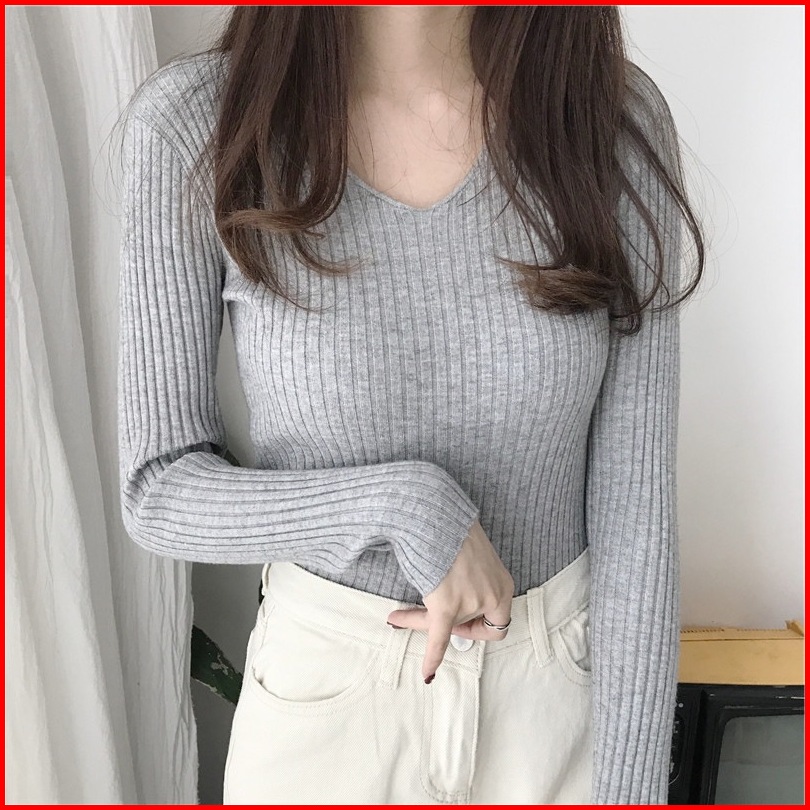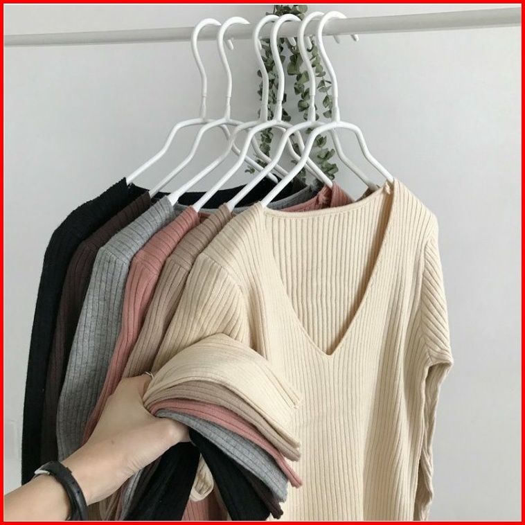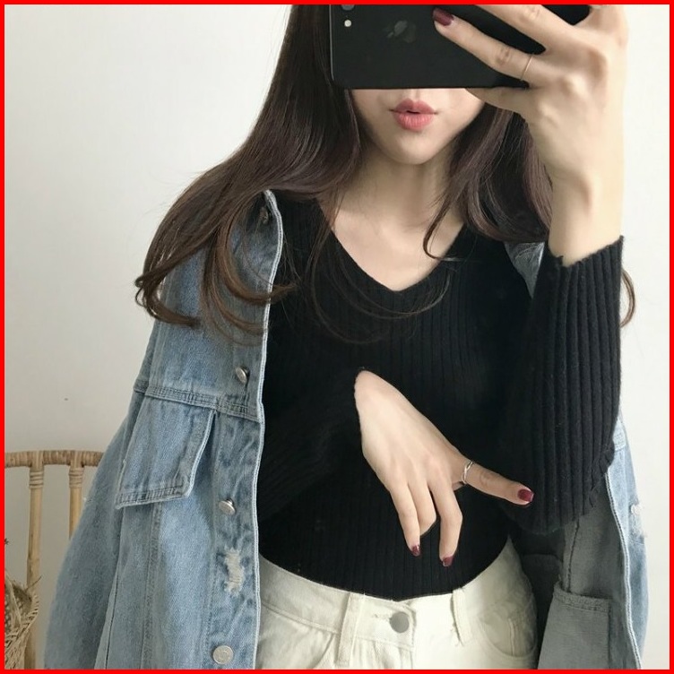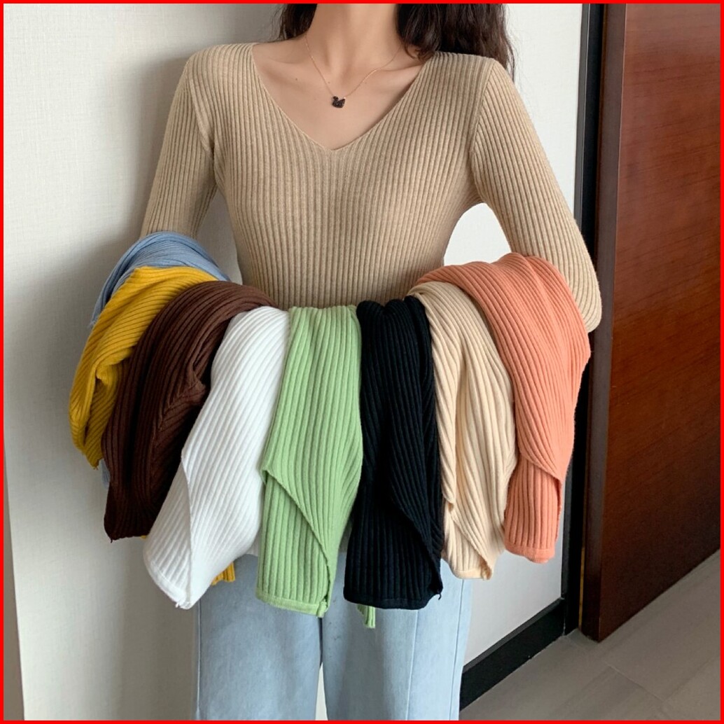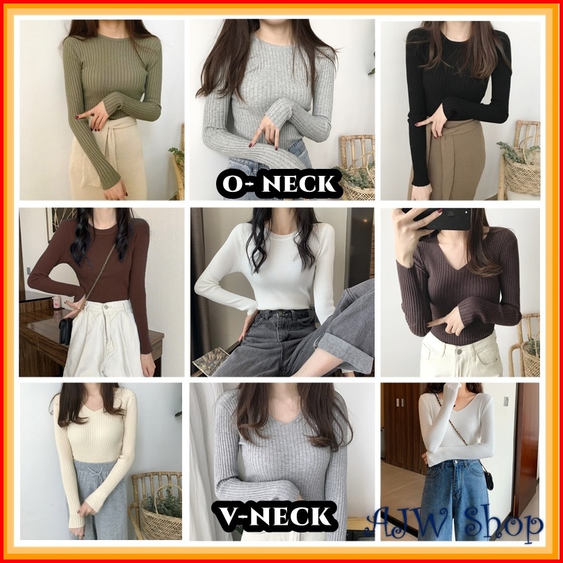 Ajwshop Atasan Rajut V Neck Lengan Panjang Import Bahan Premium Tebal Dan Adem Atasan Wanita Rajut V-neck Atasan Korean