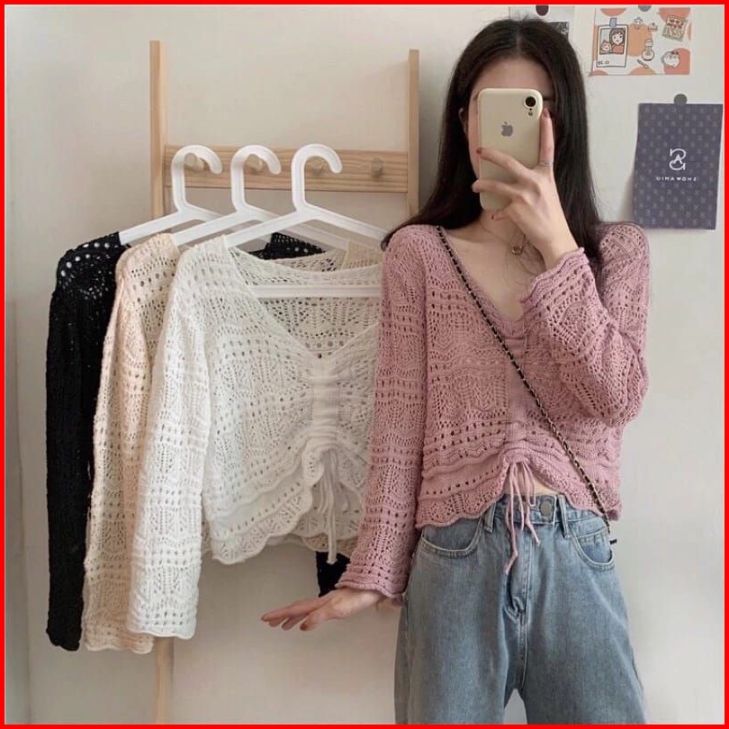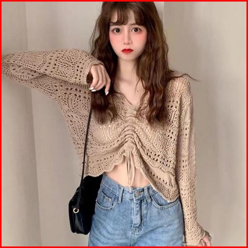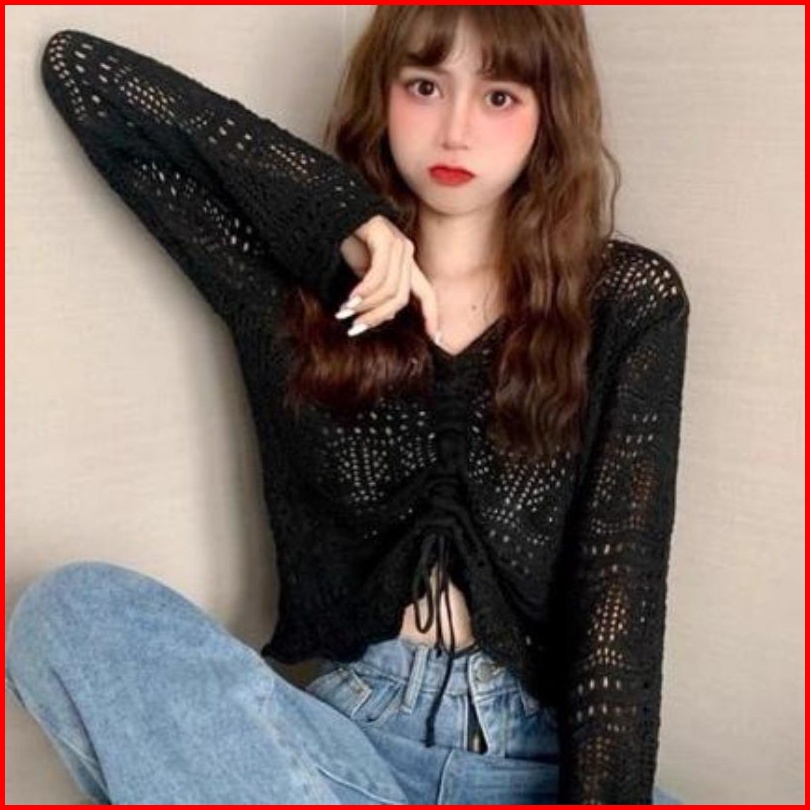 Blouse Korean Top Baju Rajut Atasan Wanita Jaring