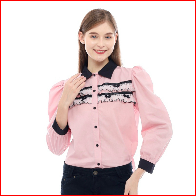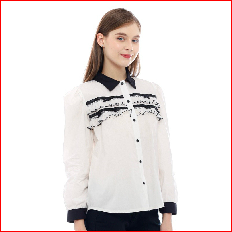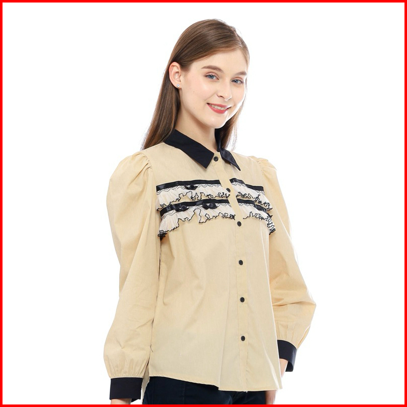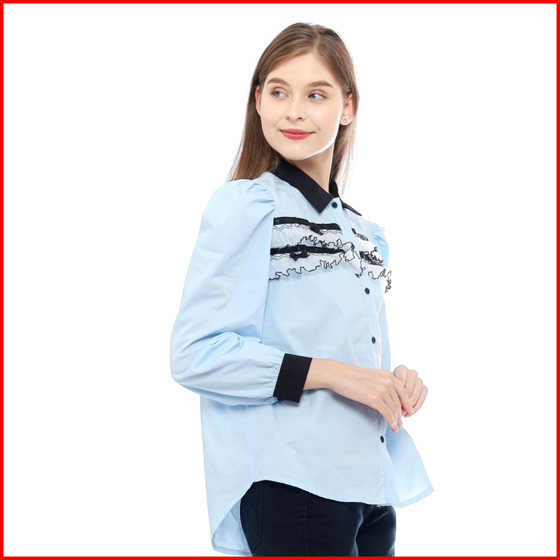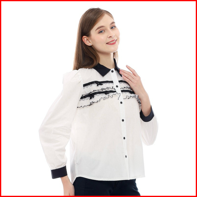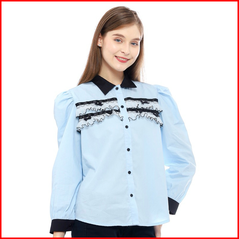Senchi - Michi Lace Shirt Kemeja Renda Plisket Organza Atasan Kemeja Puffy Wanita Style Jepang Korea Kemeja Wanita Lenga