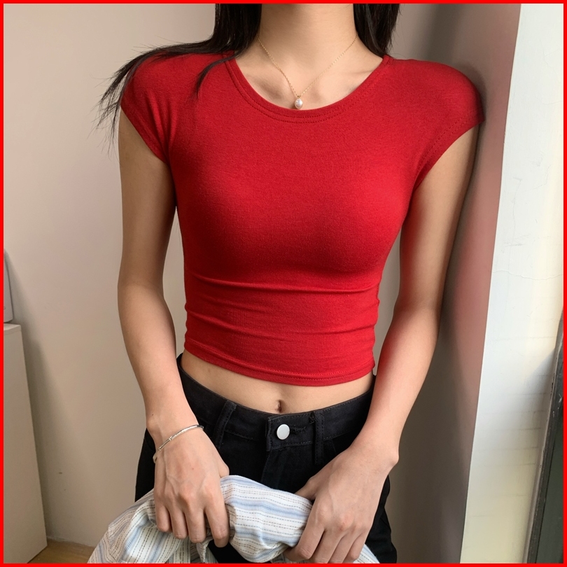 Kaos Pendek Leher Bulat Tanpa Lengan Modis Dan Seksi Atasan Ketat Wanita Gaya Korea