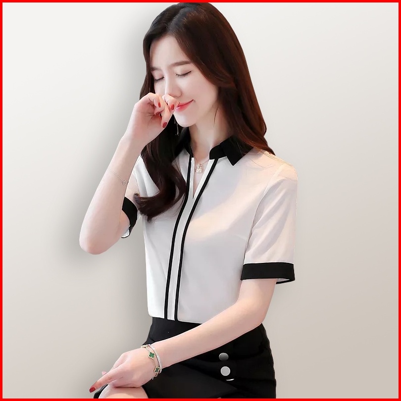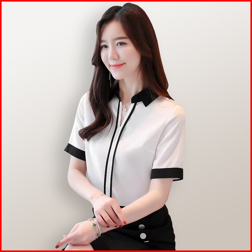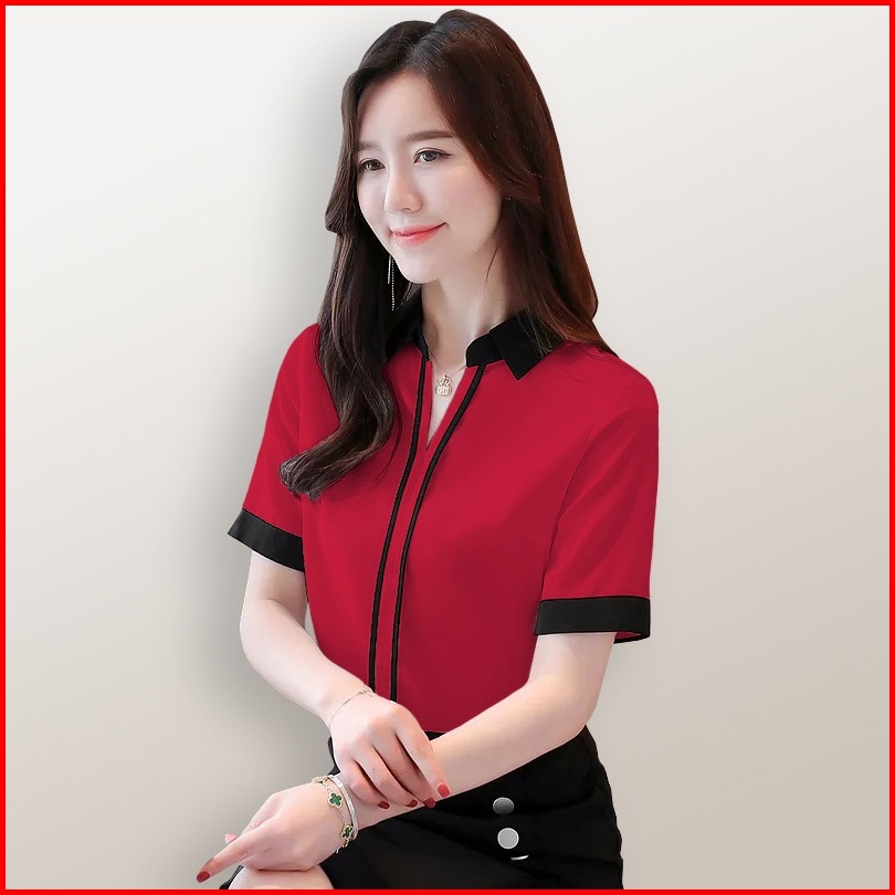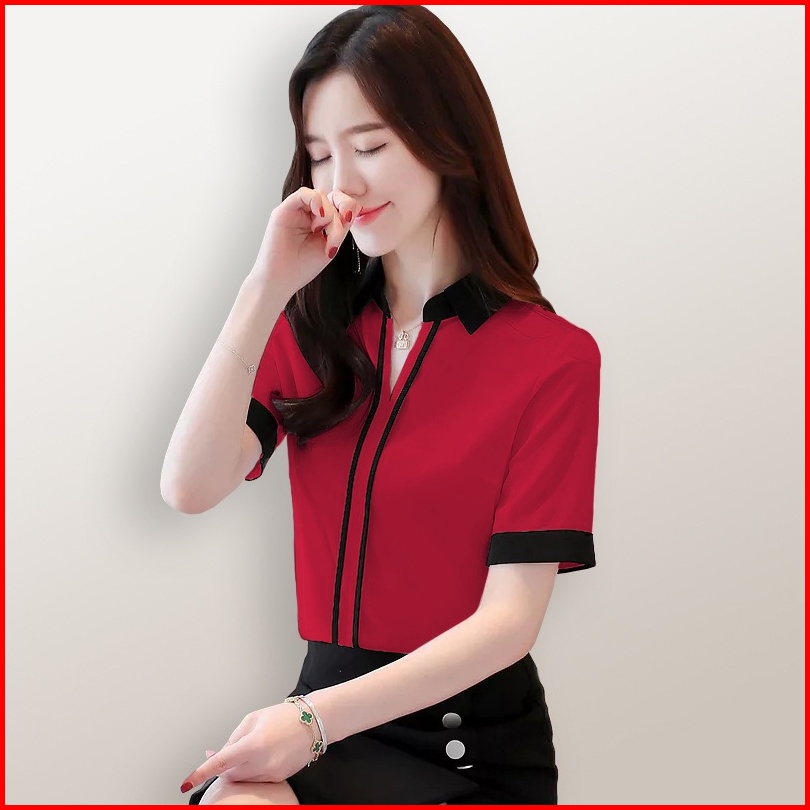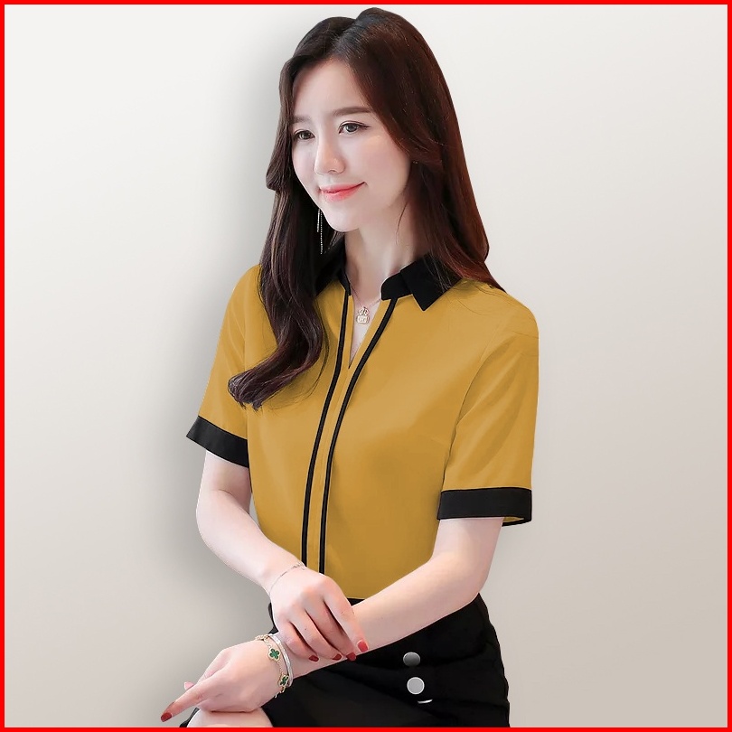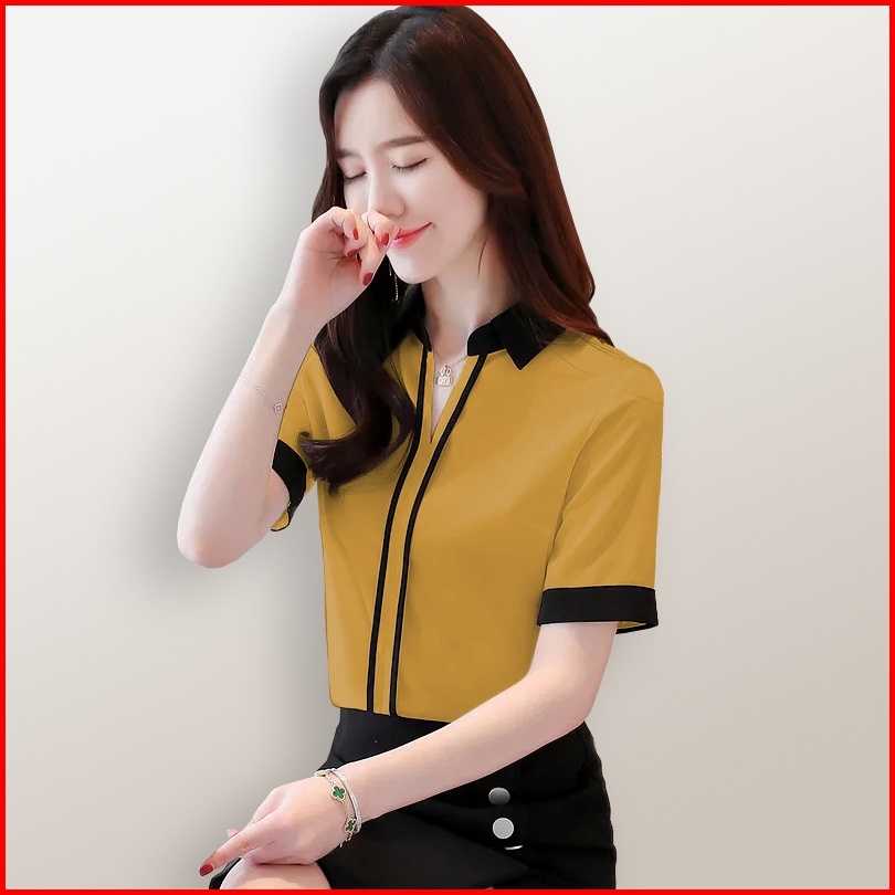 Blus Lengan Pendek Wanita Gaya Korea Variasi Krah Kemeja - Renatta Ss