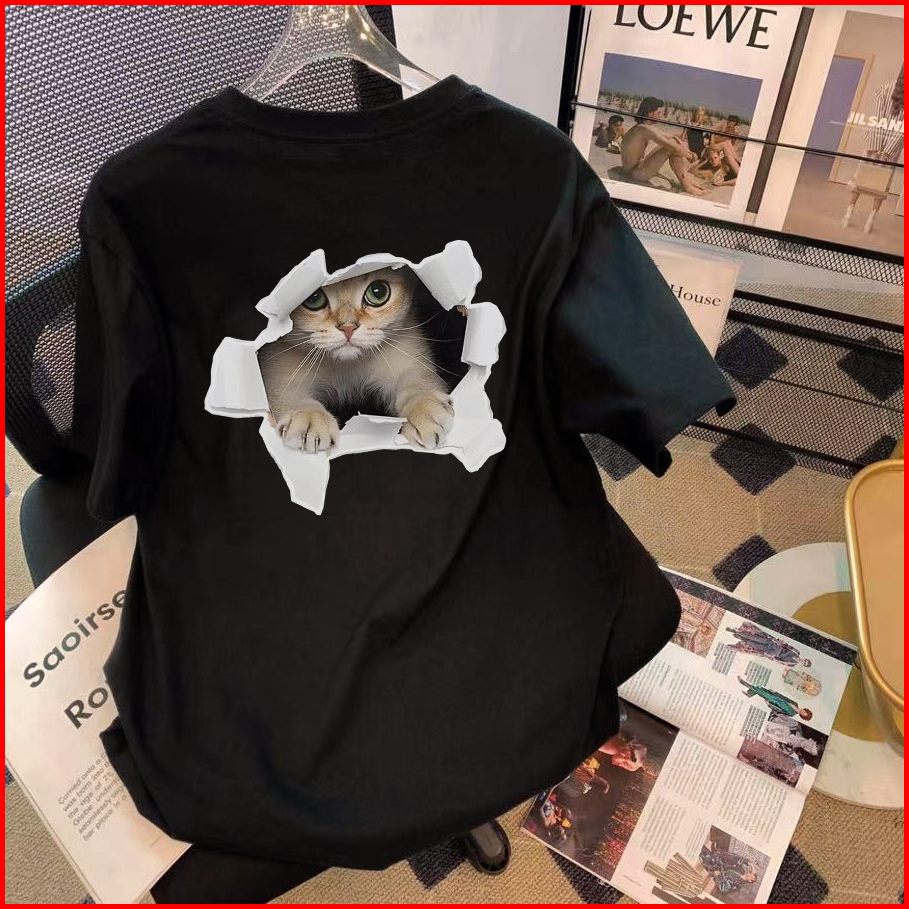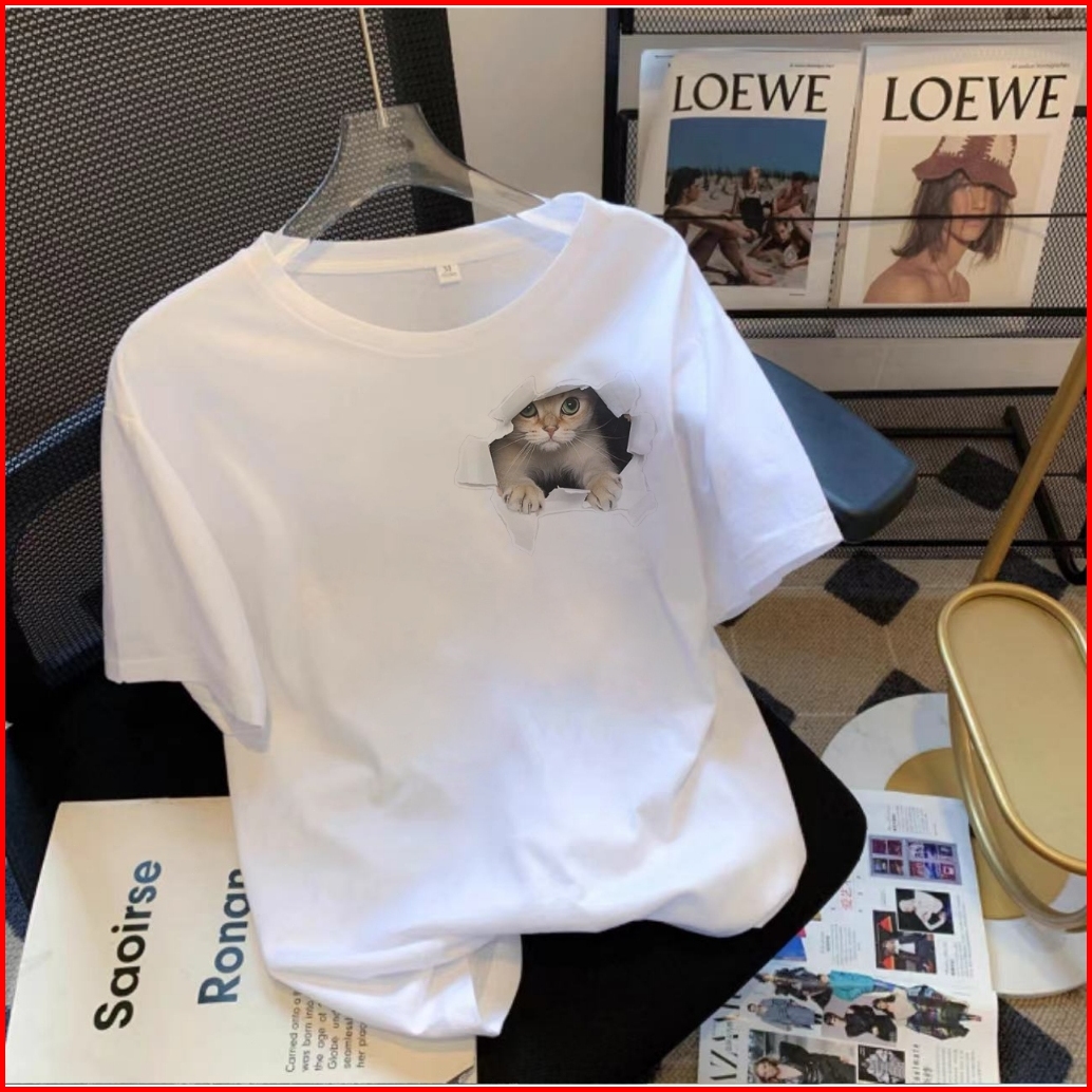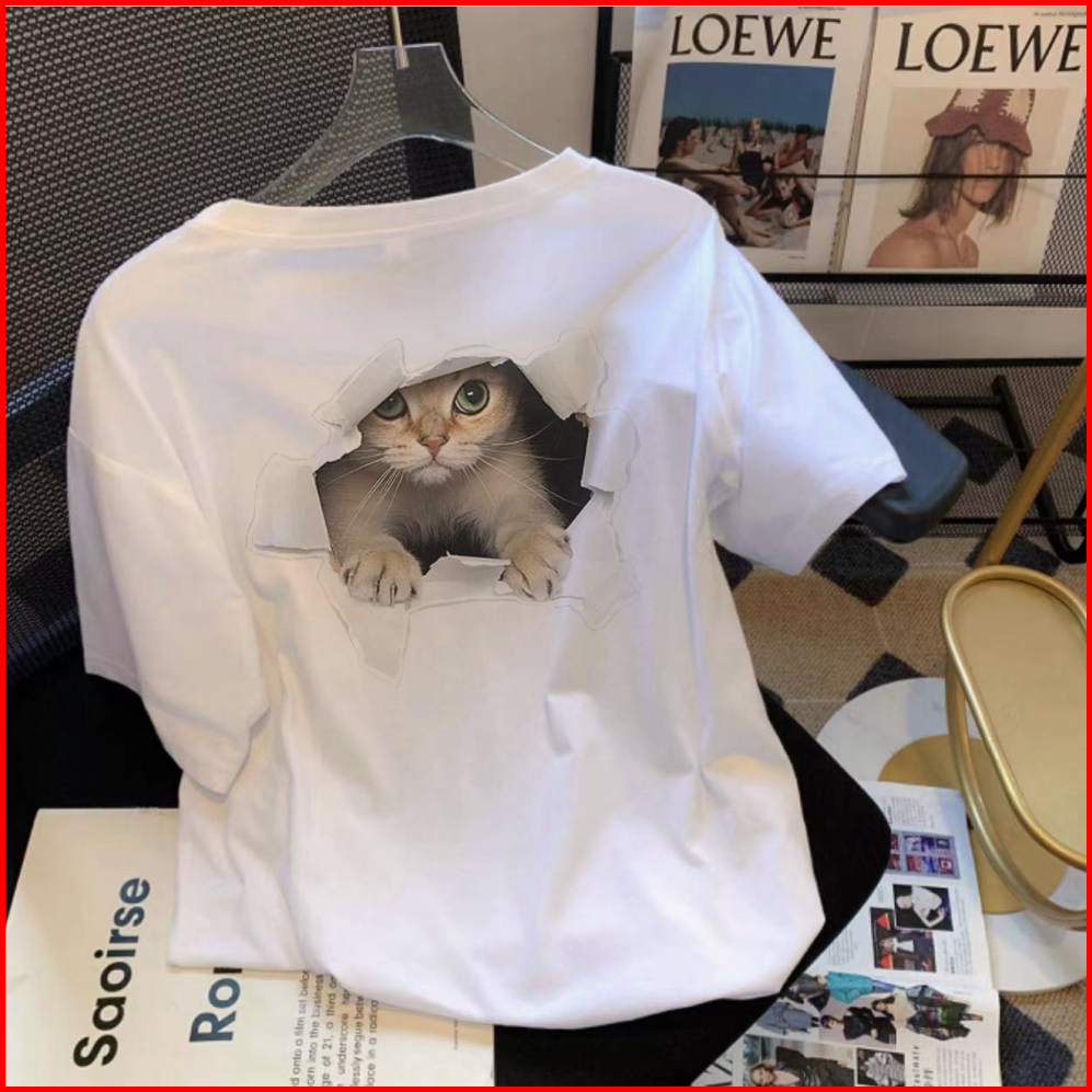 Sezo. Baju White Cat Kaos Oversize Wanita Atasan Korean Style Wanita Kaos Wanita Kekinian Baju Atasan Wanita Terbaru100