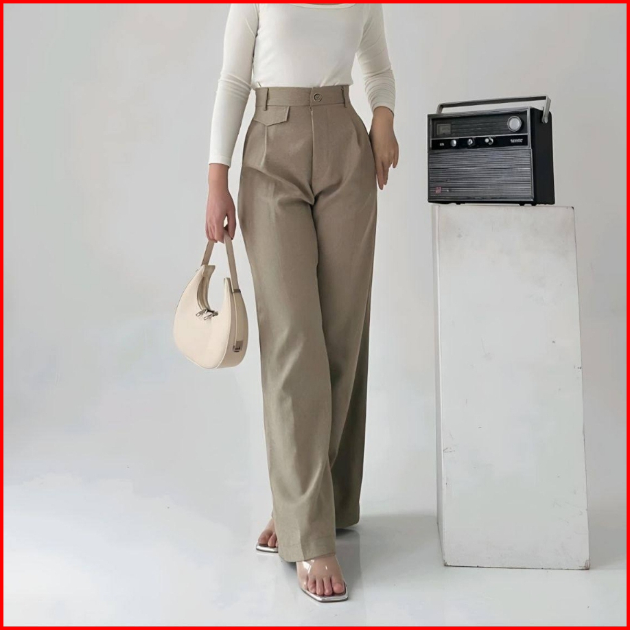 Terlaris Oro Pants - Celana Kulot Highwaist - Loose Pants Trousers - Celana Kulot Wanita - Anti Kusut Knit Premium