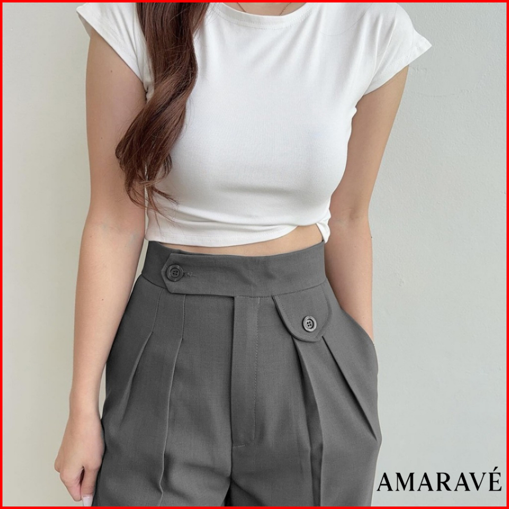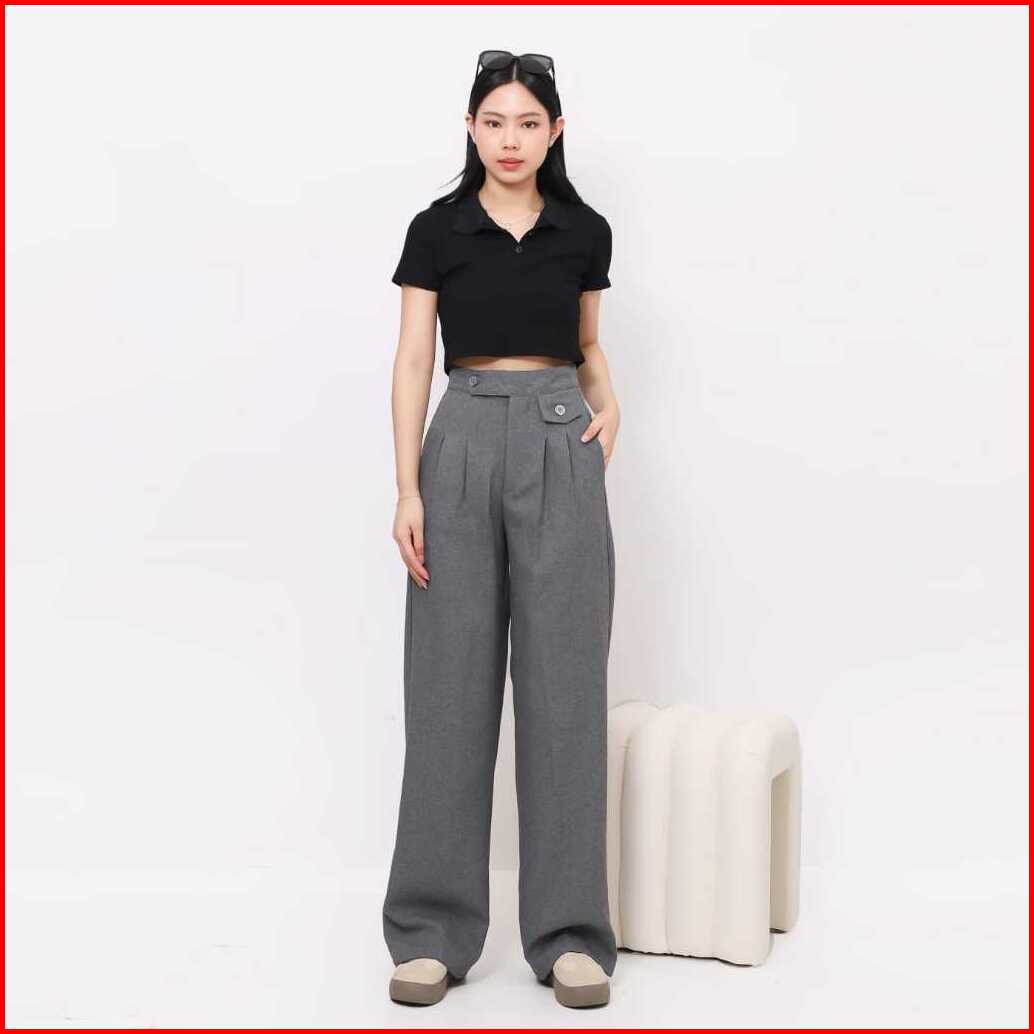 Amarave - Celana Panjang Wanita Highwaist Celana Bahan Wanita Kerja Kulot Wanita Kantor Bahan Woll
