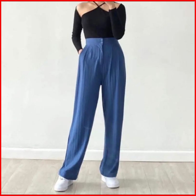 Jennie Knit Pants Celana Kulot Highwaist Double Button