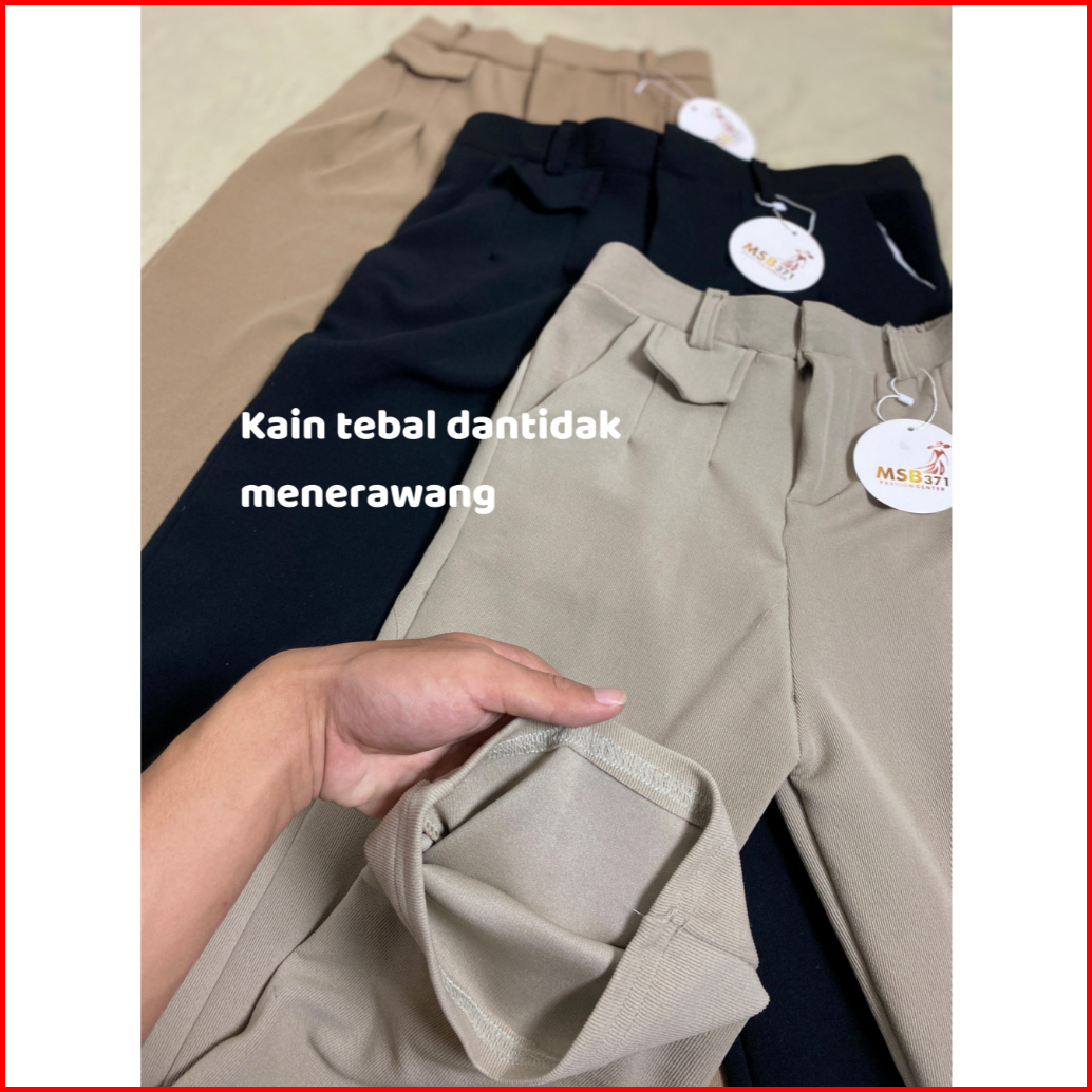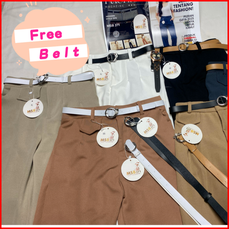 Msb-371 Free Belt Oro Pants Knit - Celana Loose Pants Trouser Wanita Highwaist