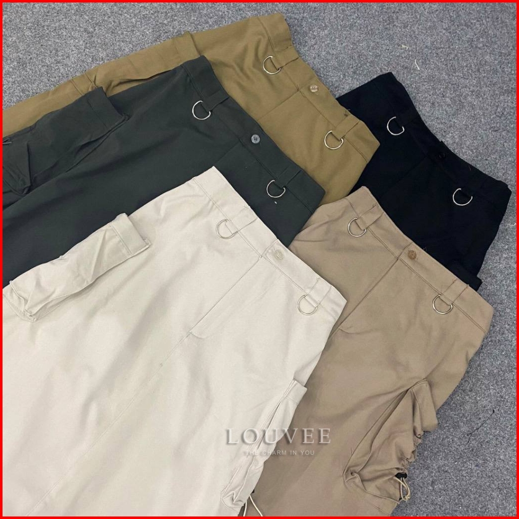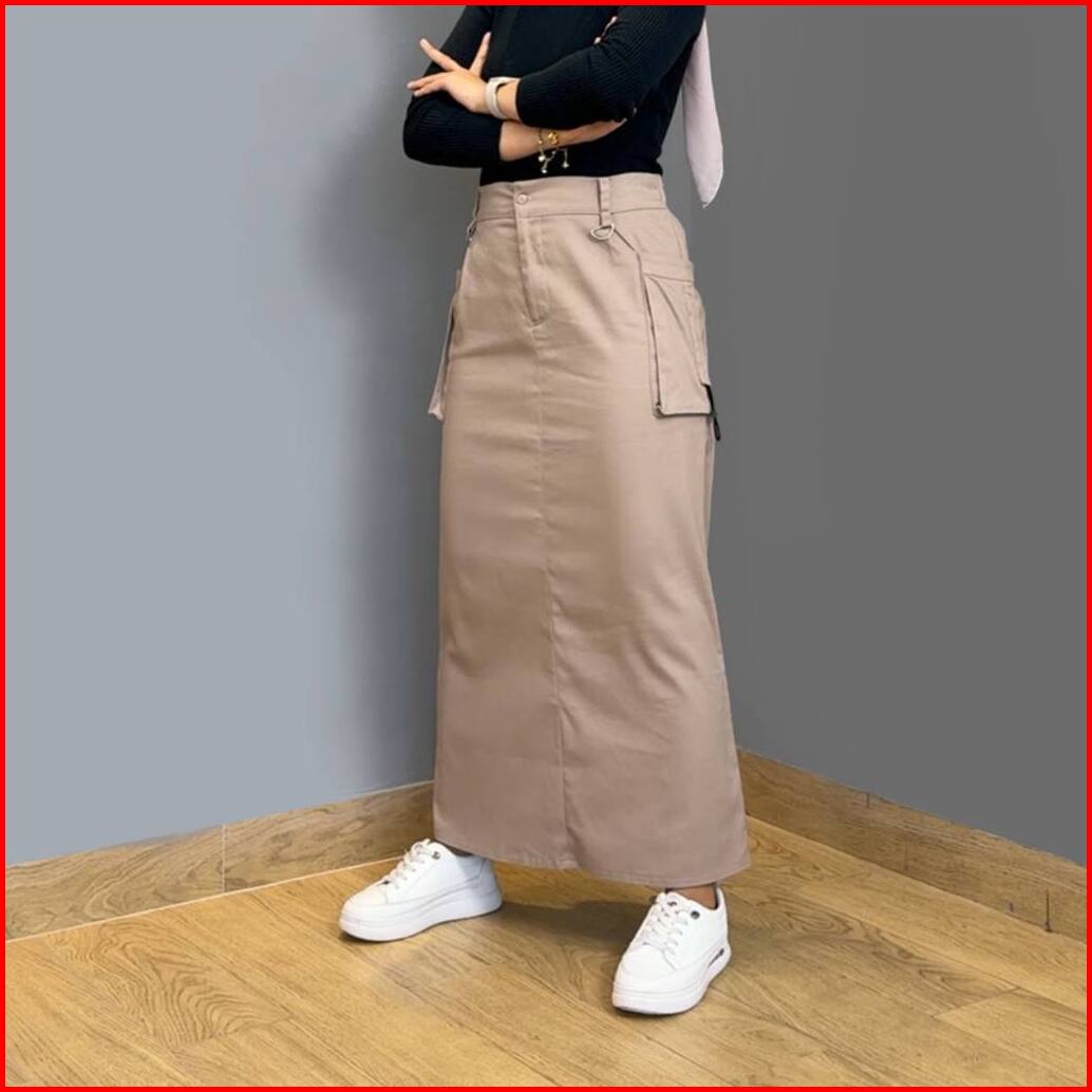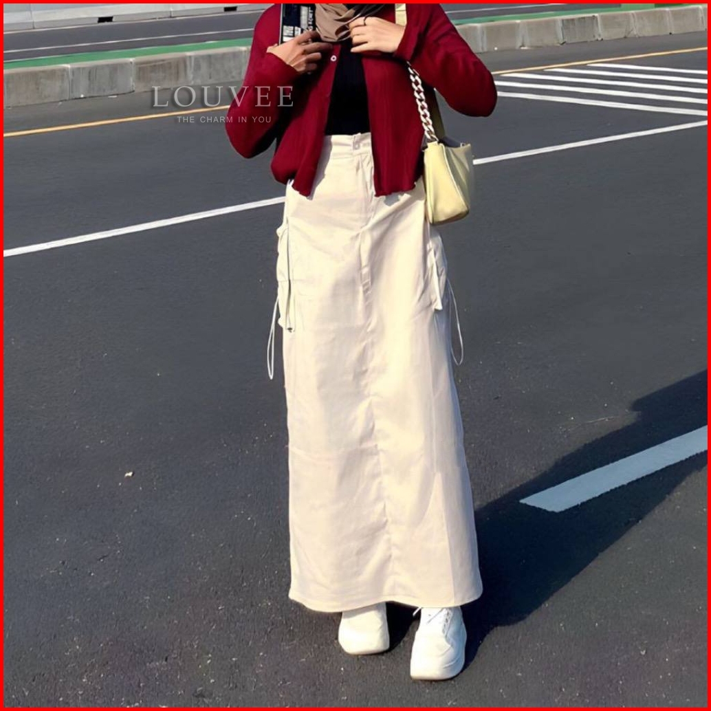 Louvee - Sonya Rok Cargo Kantong Serut Kargo Skirt Katun Twill Premium A-line Cantik Fit Melar
