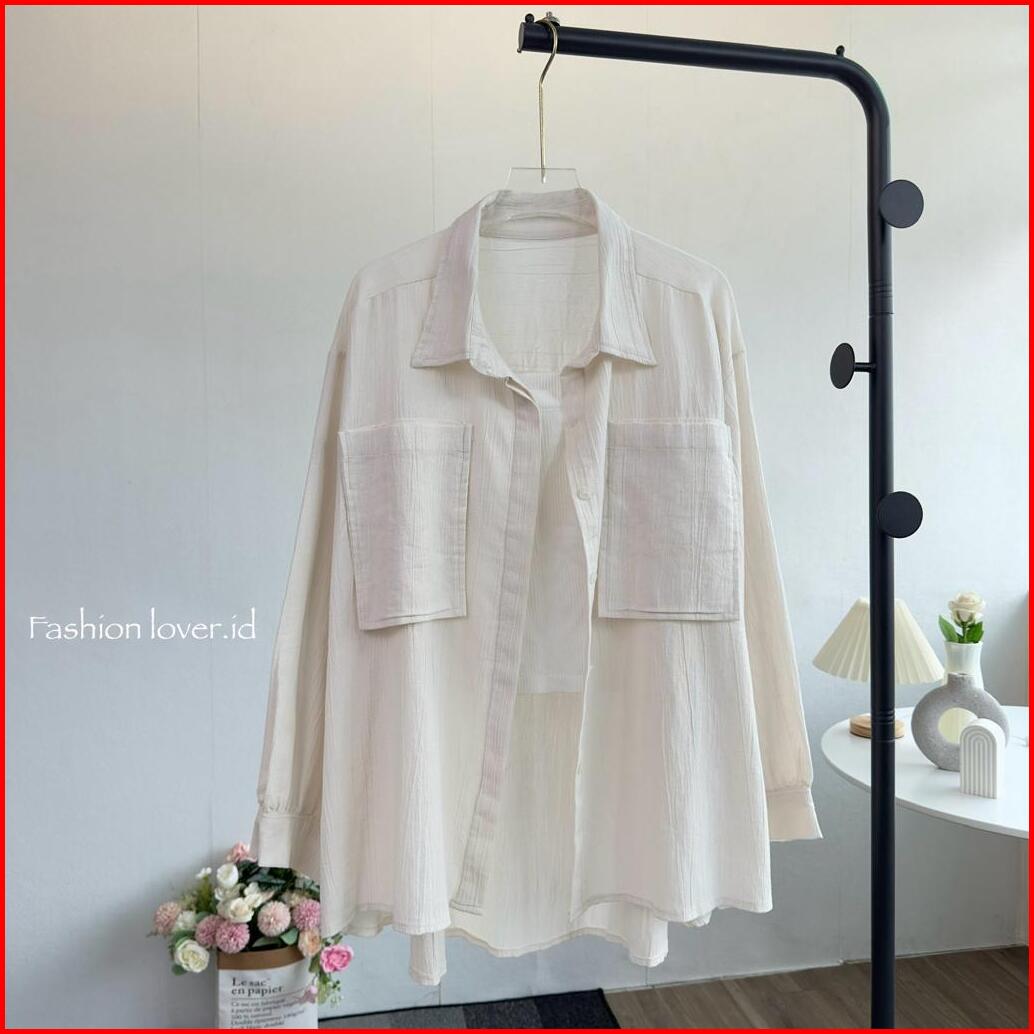 Kemeja Oversize Wanita Ld 130cm Atasan Wanita Full Kancing Oversized Shirt Linen Kringkel