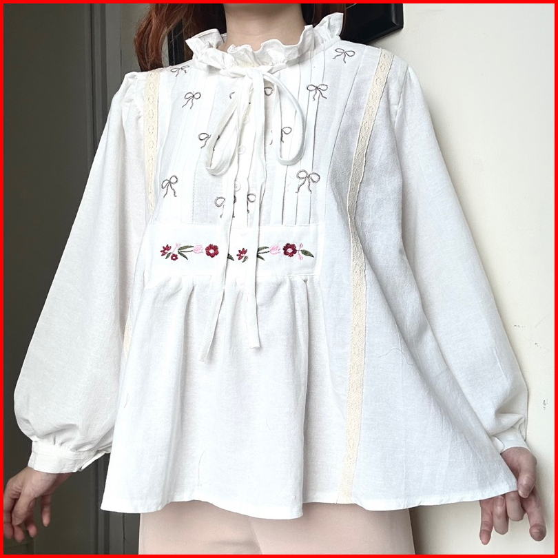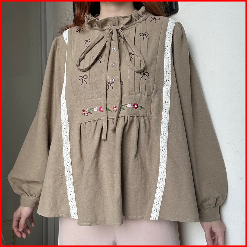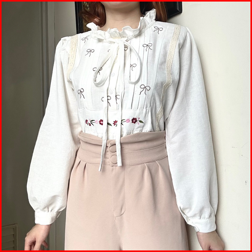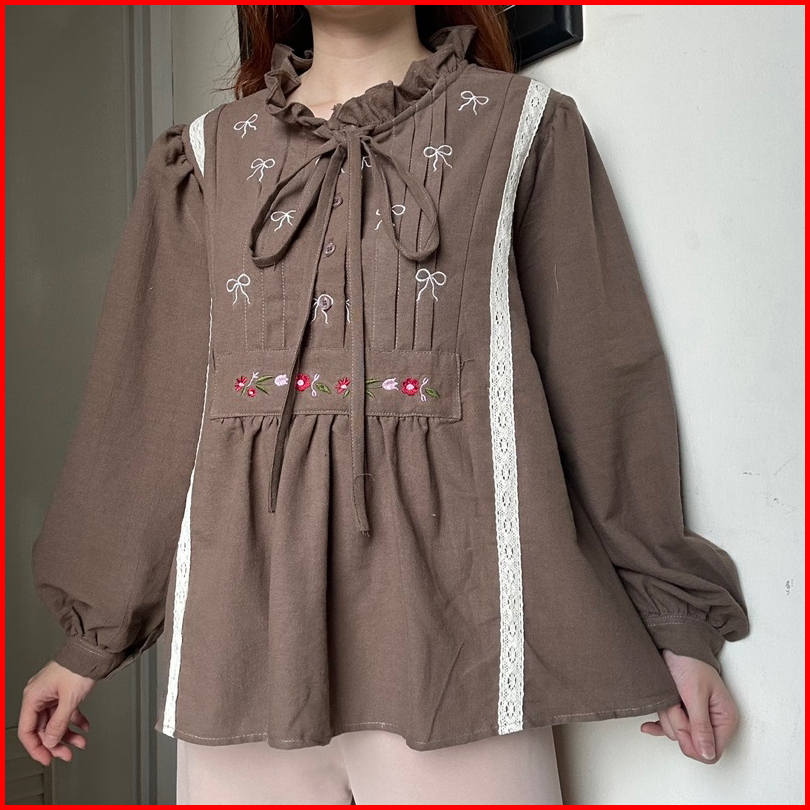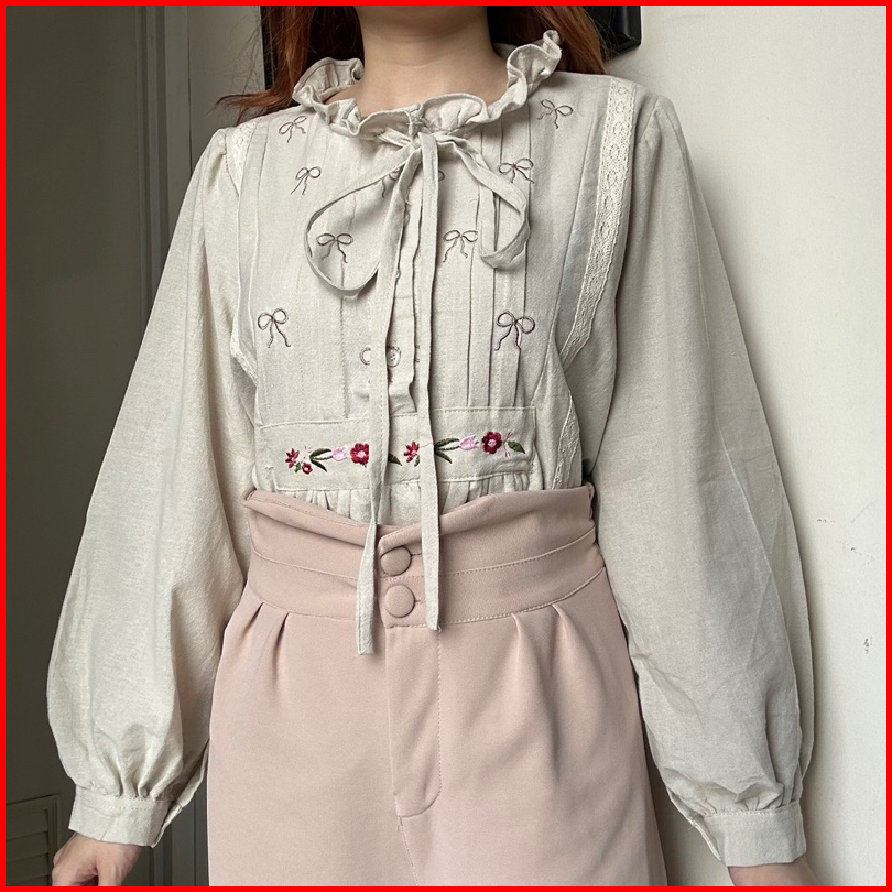 Nikita Top Atasan Blouse Kemeja Wanita Linen Bordir Coquette Korean Style By Biel The Label