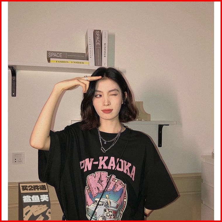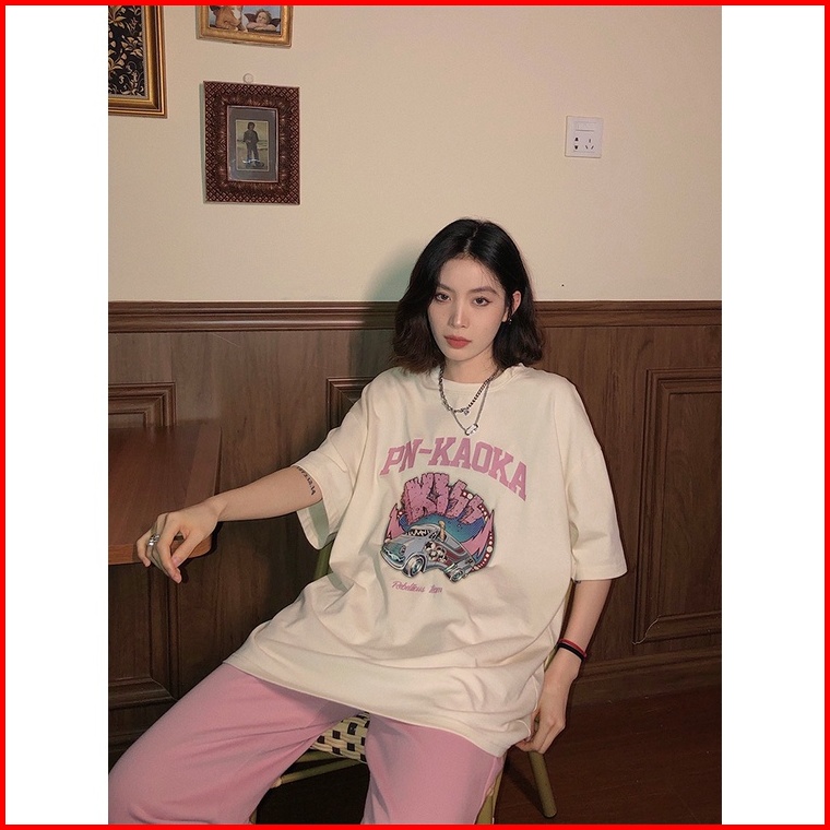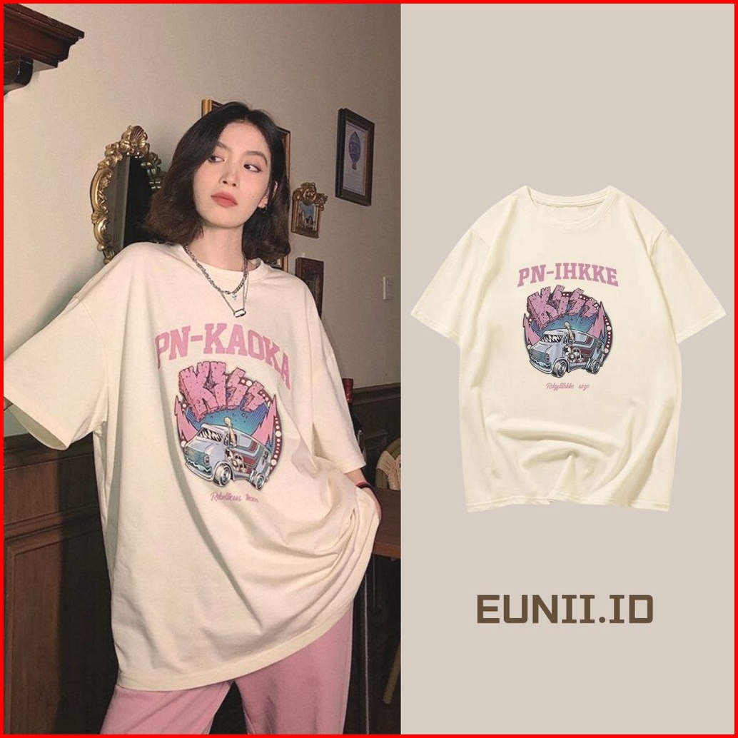 Kaos Lengan Pendek Retro Car Korean Style Kaos Oversize Wanita Atasan Wanita