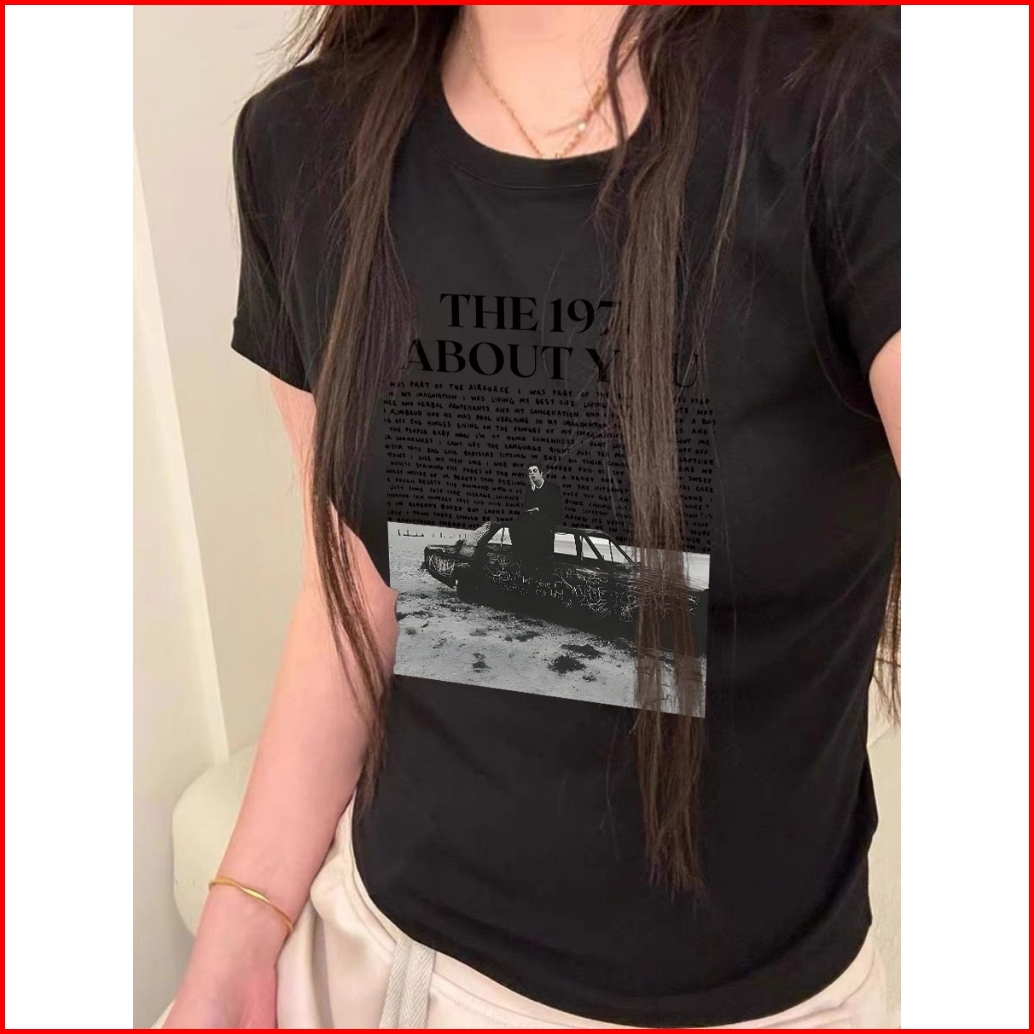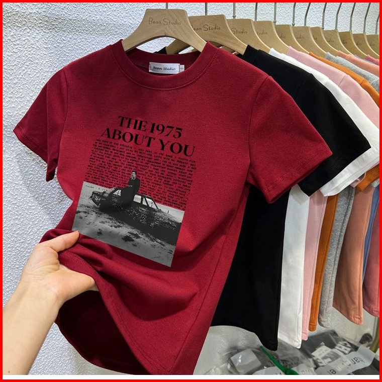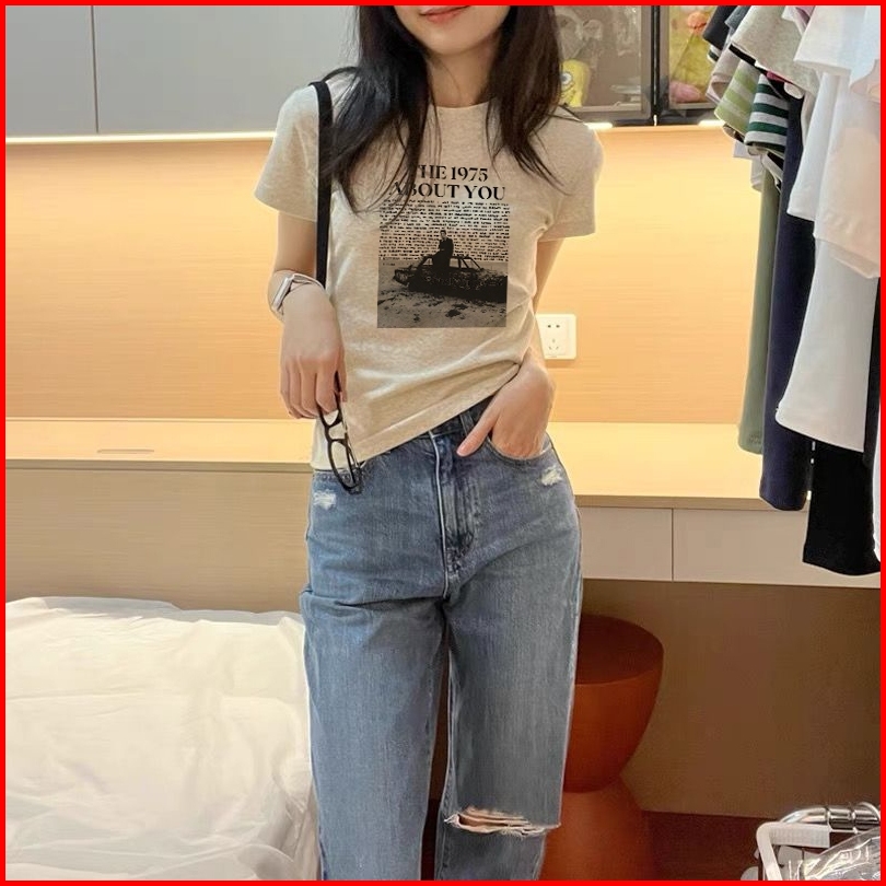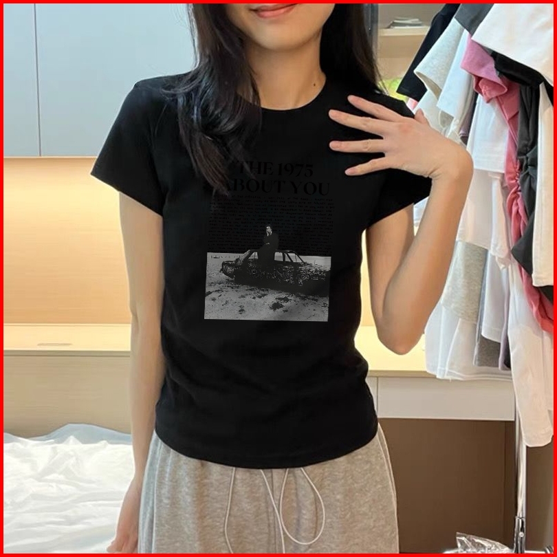 Xiaozhainv Atasan Pendek Wanita Gaya Korea Kaos Crop Wanita Atasan Kaos Wanita Kekinian Kaos Ketat Wanita Sexy Baju Cwek