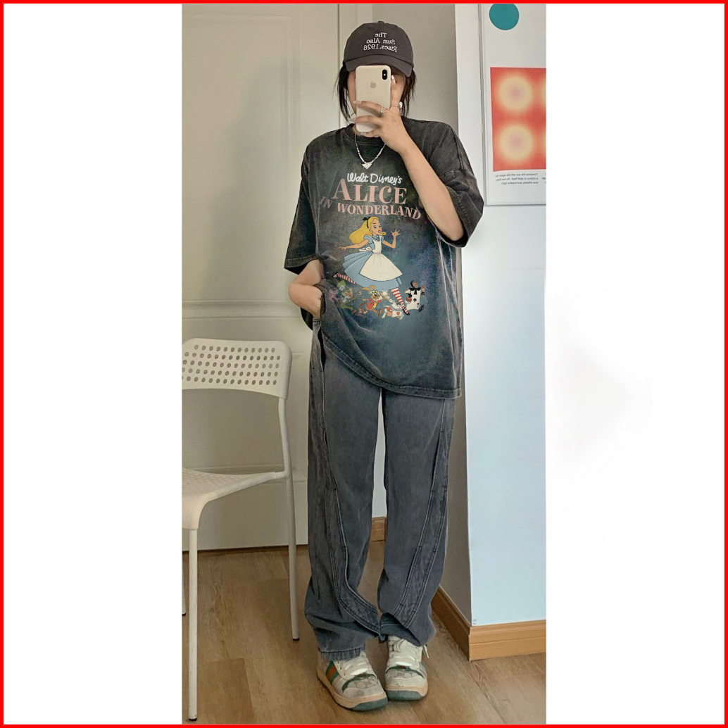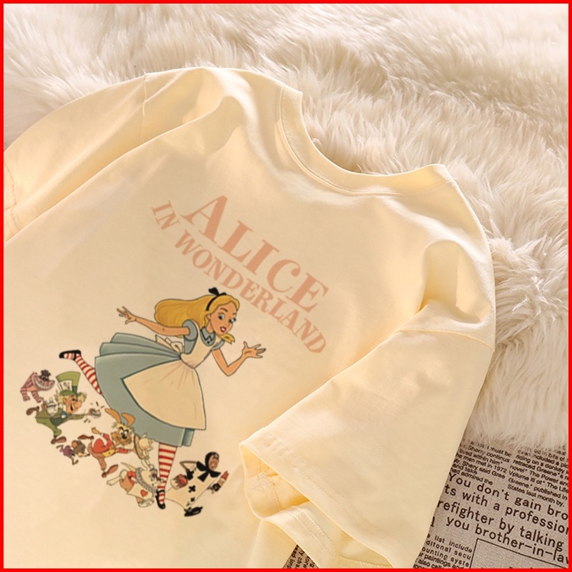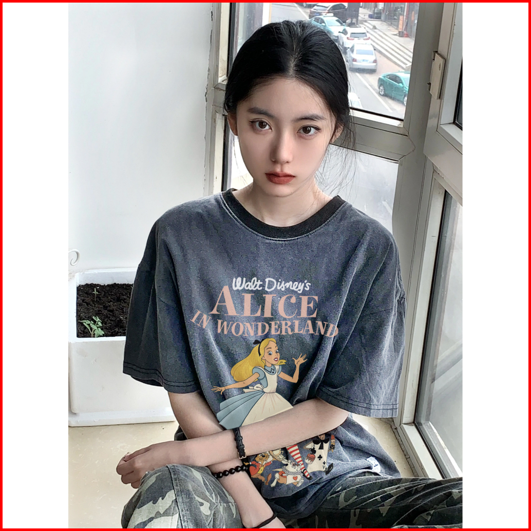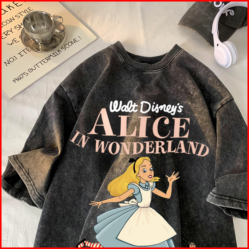 Sezo. T Shirt Washed Alice In Wonderland Kaos Oversize Baju Korean Style Wanita Ootd
