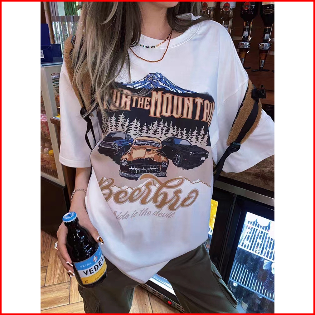 Sezo.korean Style Kaos Retro Street Style Wanita Lengan Pendek Oversize Printed T-shirt Baju Wanita Fashion
