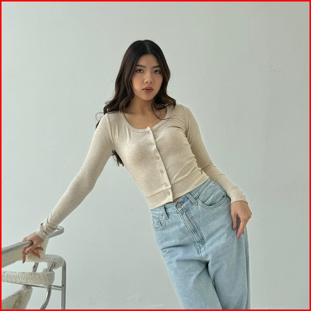 December Top Atasan Knit Wanita Korean Top Baju Knit Wanita Lengan Panjang Basic Long Sleeve