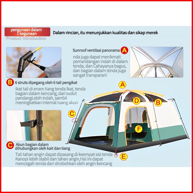 Tenda Camping 5-8 Orang 3.32.12.0m Portable Waterproof Camping Tent