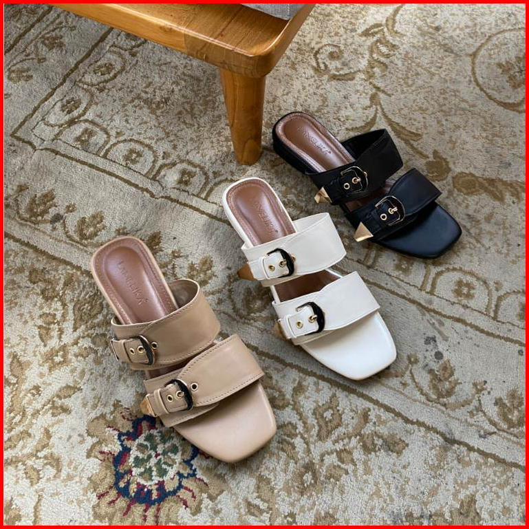 Lamelika Flora Sandal Flat Selop Teplek Wanita Elegan Casual Slip On