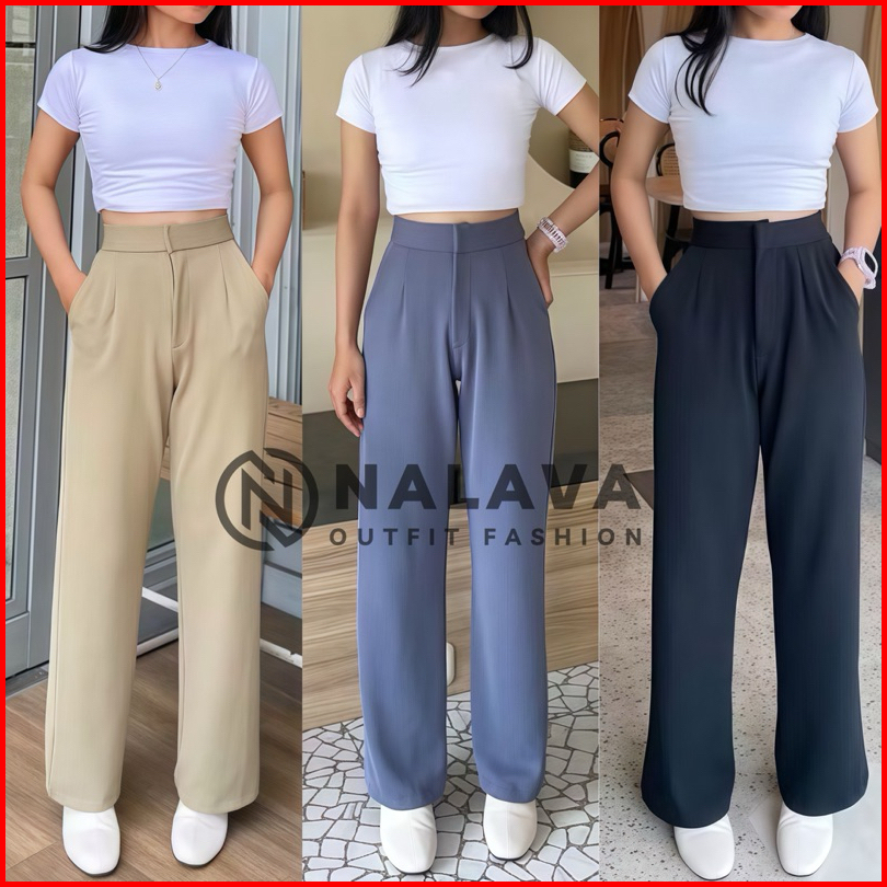 Cozie Pants Celana Highwaist Wanita Panjang Kulot Rib Knit Premium By Jennie Celana Panjang Korean Stryle Anti Kusut Ter