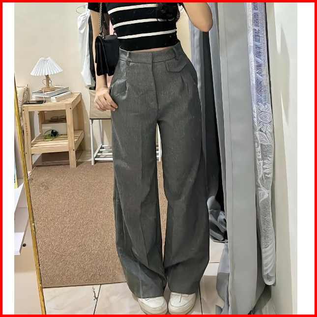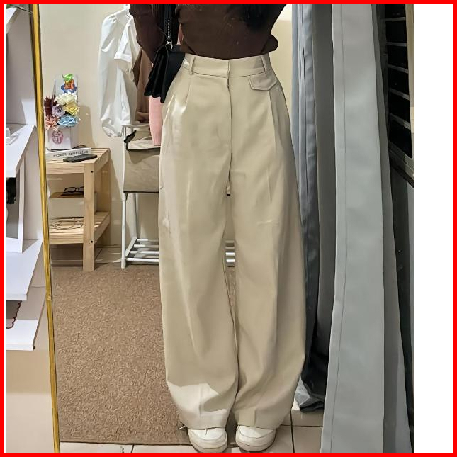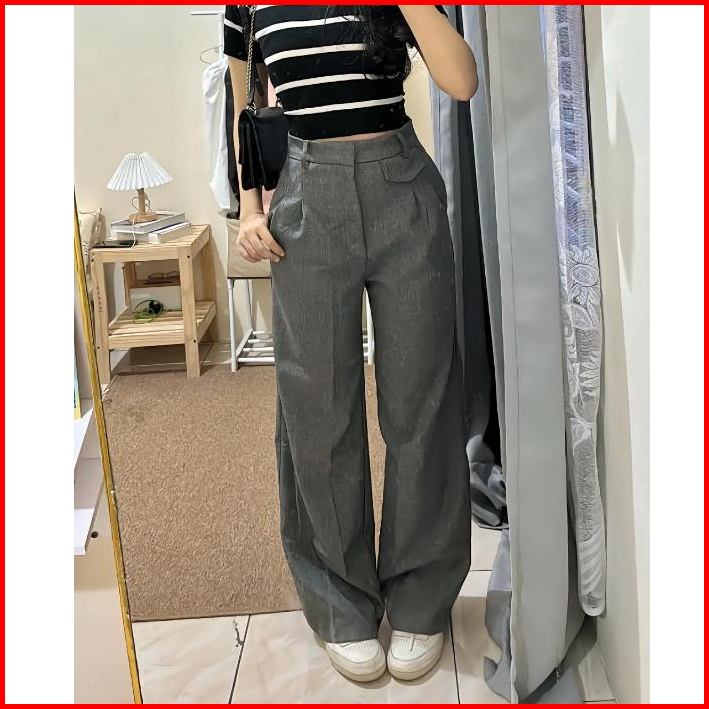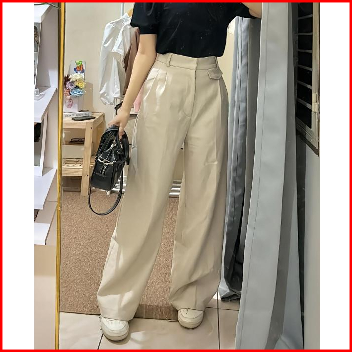 Elmaraz - Celana Bahan Wanita Panjang Kerja Kantor Celana Kulot Wanita Loose Pants Trouser Highwaist