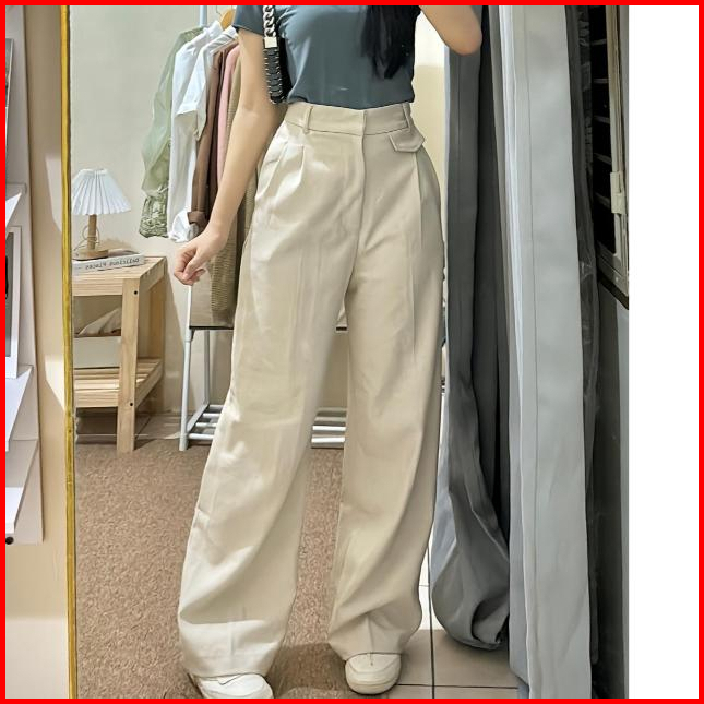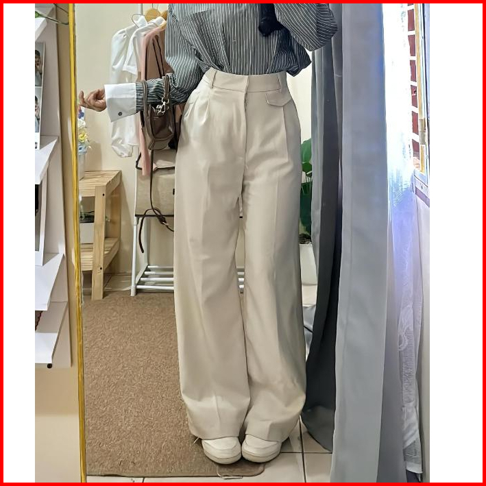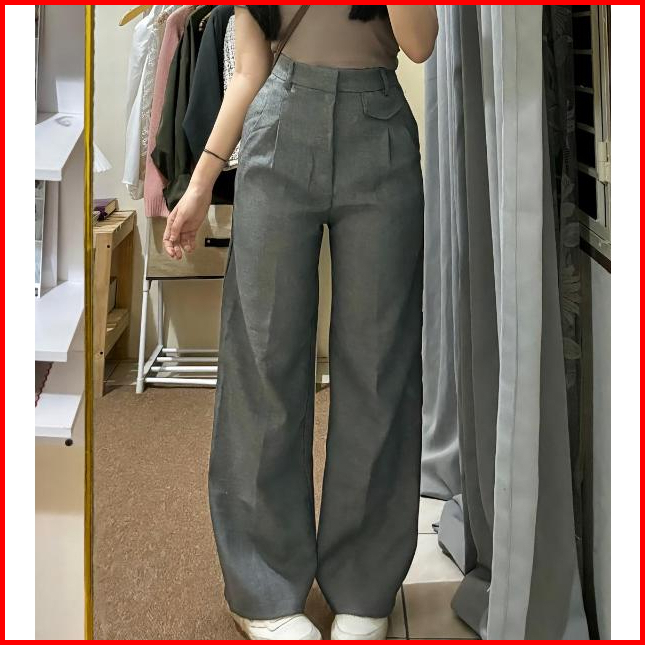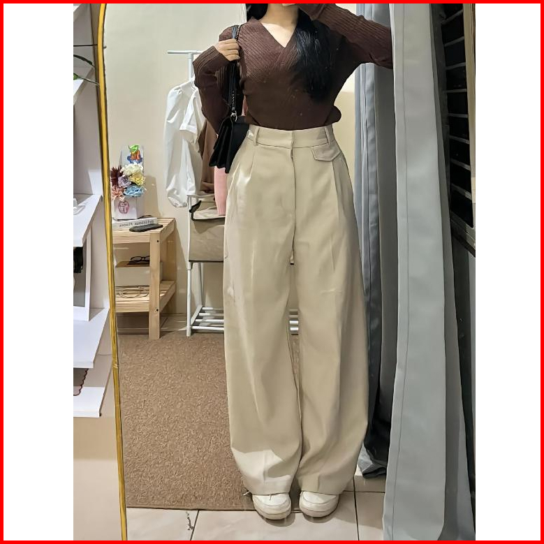 Elmaraz - Celana Kulot Panjang Wanita Kerja Kantor Loose Pants Wanita Kekinian Terbaru