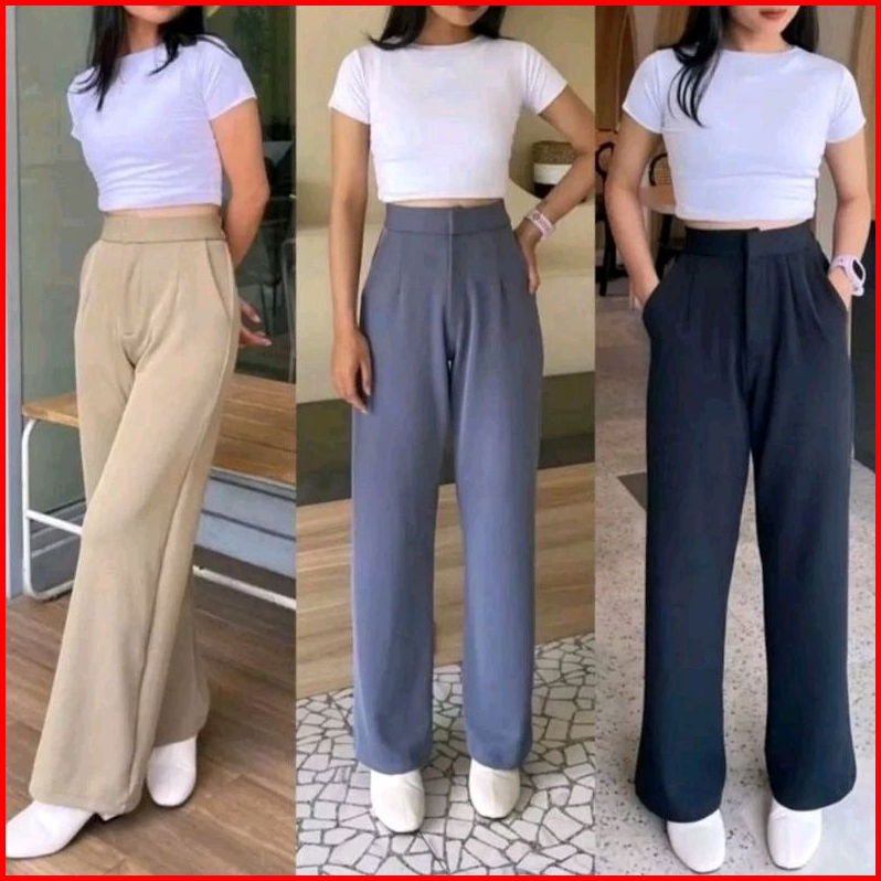 Long Cullote Rosie Pants - Celana Murah Berkualitas Kulot Rib Knit Premium - Korean Loose Pants Trousers Wanita - Lounge