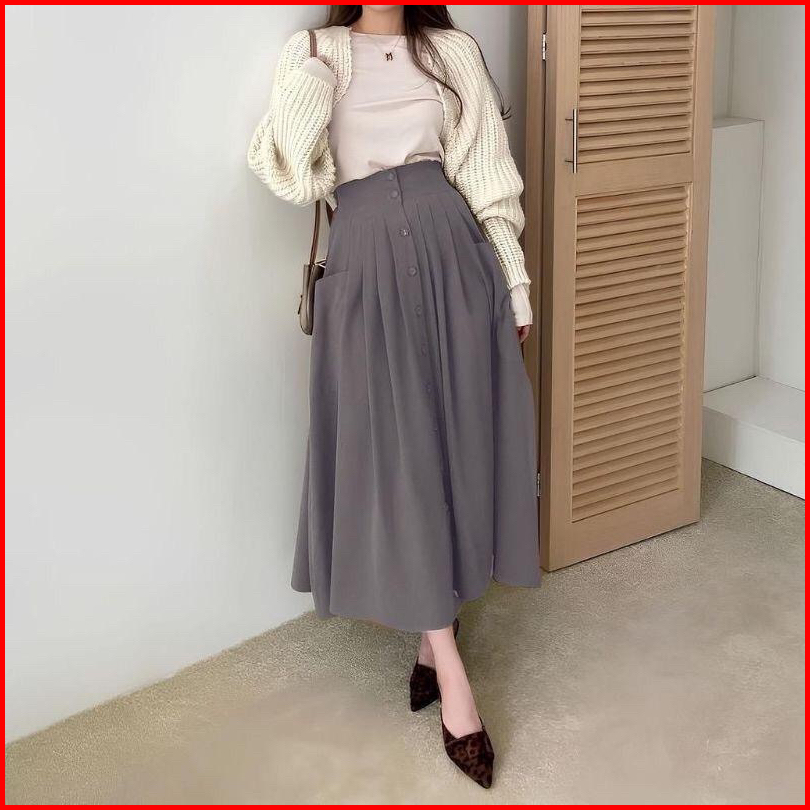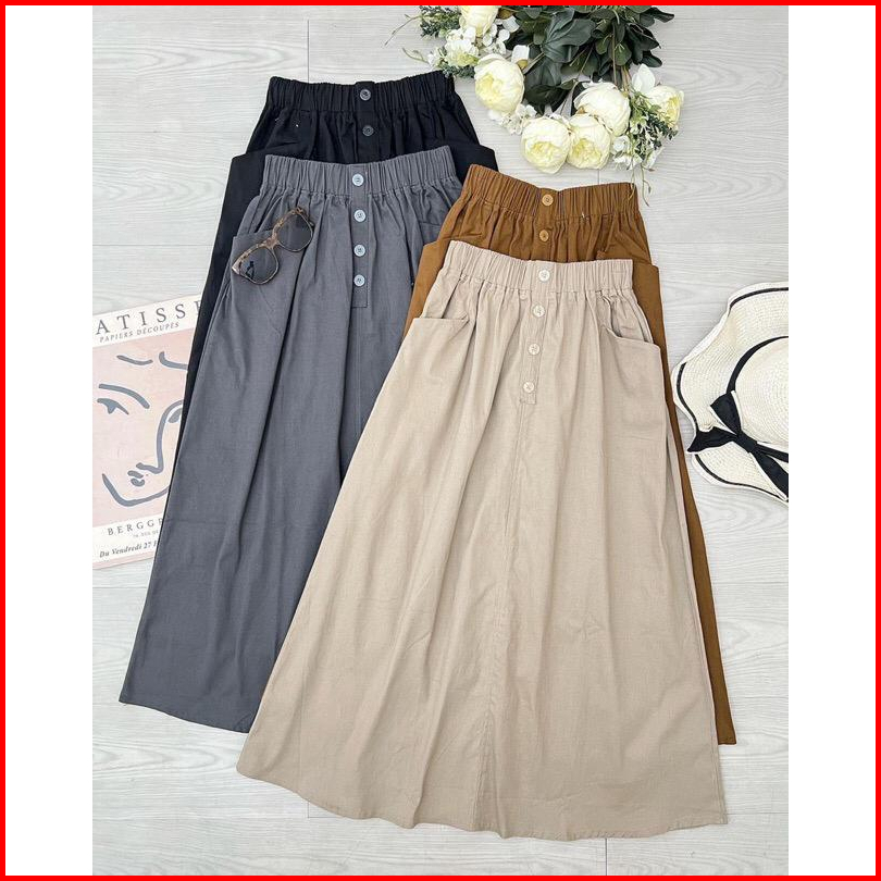 Nuna Rok Skirt Korean Style Bahan Cotton Twill Premium Bawahan Wanita Terbaru Rok Panjang Wanita Fit To Xl