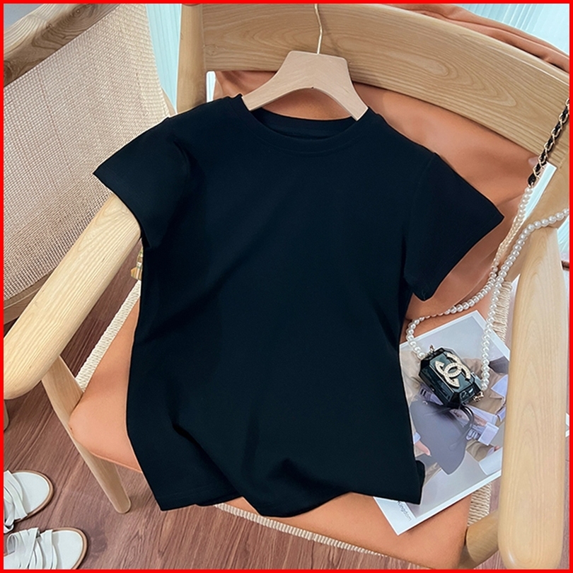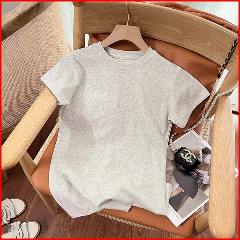 T-shirt Serbaguna Leher Bulat Warna Solid Baju Kaos Wanita Korea Kaos Ketat Elastis Baru Kaos Ceop Top Wanita Realpict